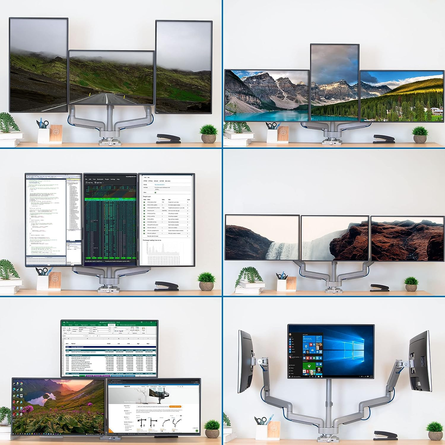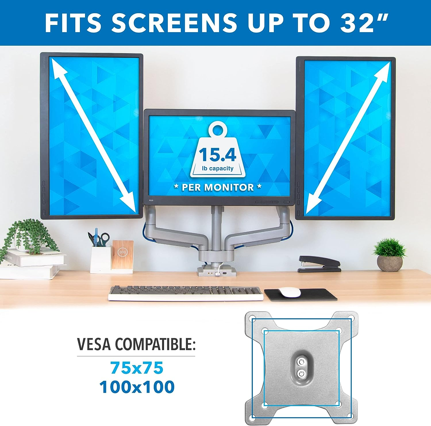 Unknown: preg_replace(): Passing null to parameter #3 ($subject) of type array|string is deprecated in /home/jin/public_html/system/storage/modification/system/engine/action.php on line 30 Mount-It! Triple Monitor Mount | Desk Stand with USB and Audio Ports | 3 Counter-Balanced Gas Spring Height Adjustable Arms for Three 24 27 30 32 Inch VESA Screens | C-Clamp and Grommet Bases Included