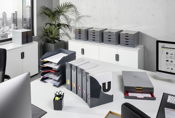 Easy document organization thanks to the use of VARICOLOR® office accessories. Modern design, discreet colorful lines help in organizing and sorting documents. In VARICOLOR® containers, documents are clearly sorted and always at hand.