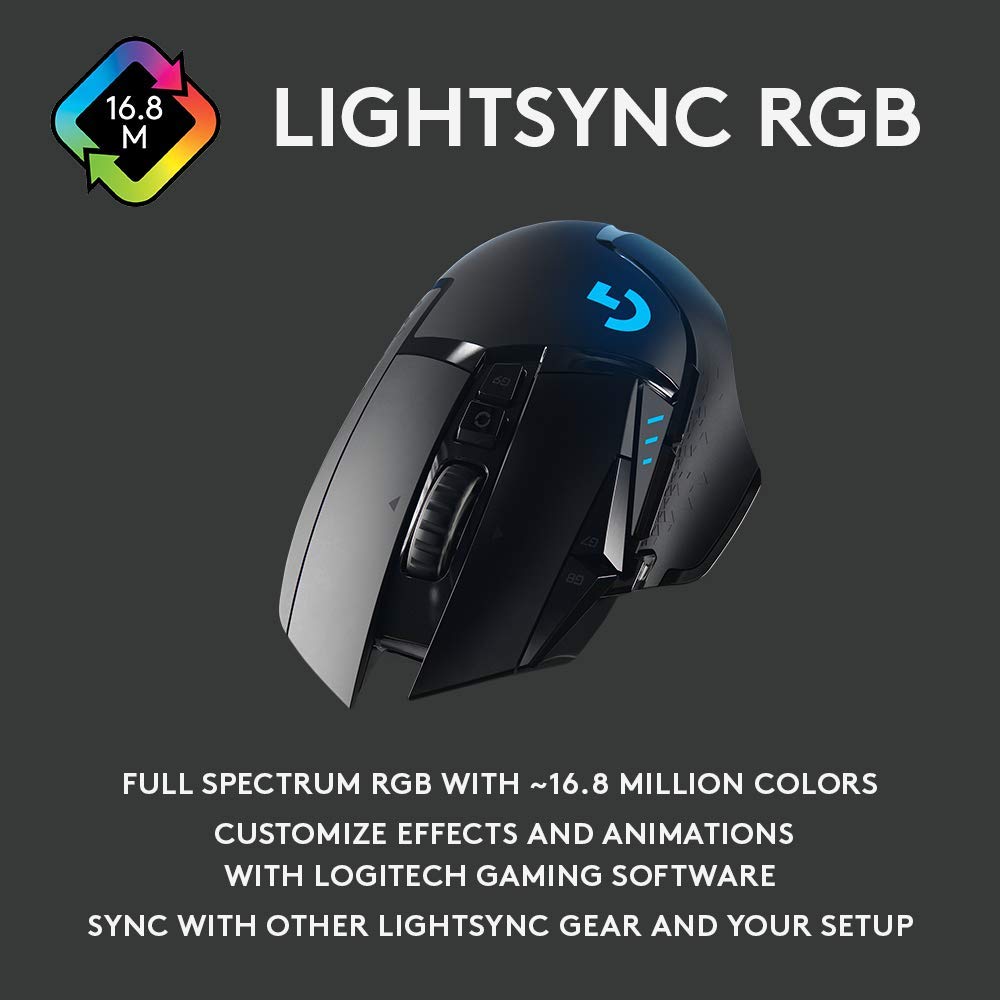 Logitech G502 Lightspeed Wireless Optical Gaming Mouse with RGB Lighting - Black