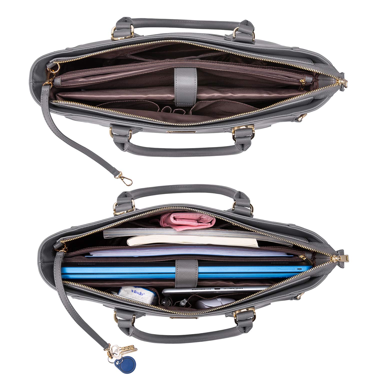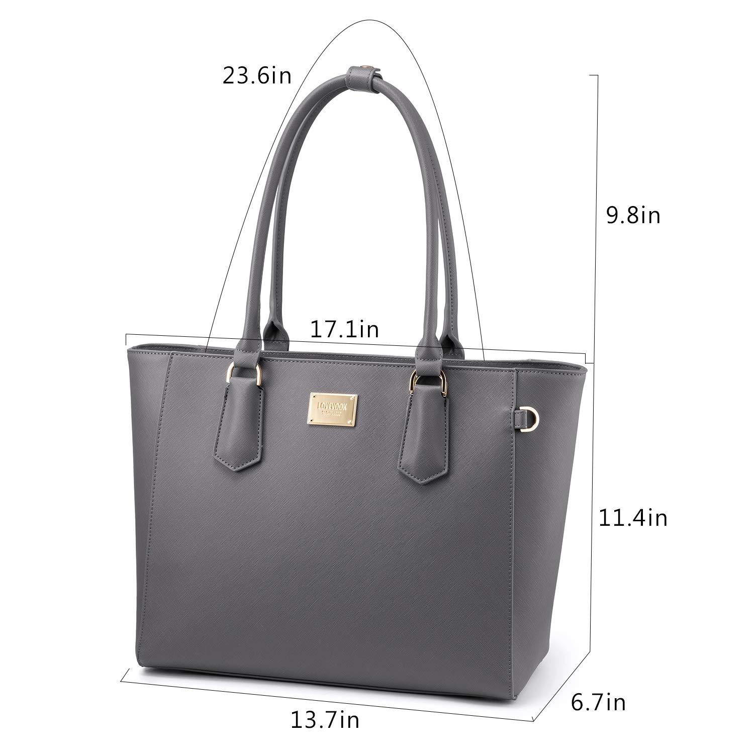 Laptop Bag for Women Large Office Handbags Briefcase Fits Up to 15.6 inch Grey