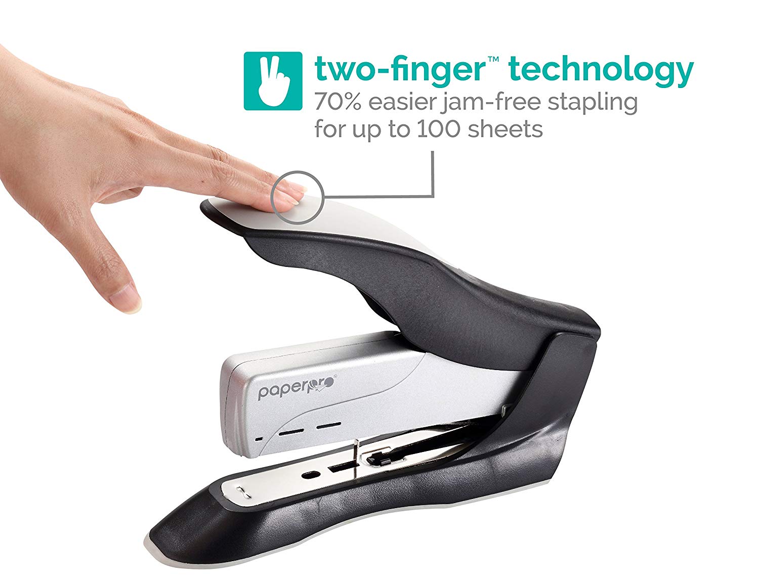 - One finger can staple up to 20 sheets