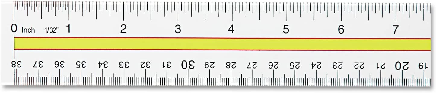 - Two beveled edges ruled with standard scale on one side, metric on the other.