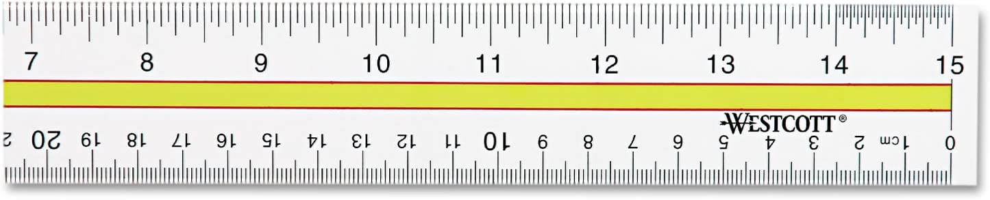 - Clear plastic ruler features a see-through yellow center panel to highlight one line at a time.