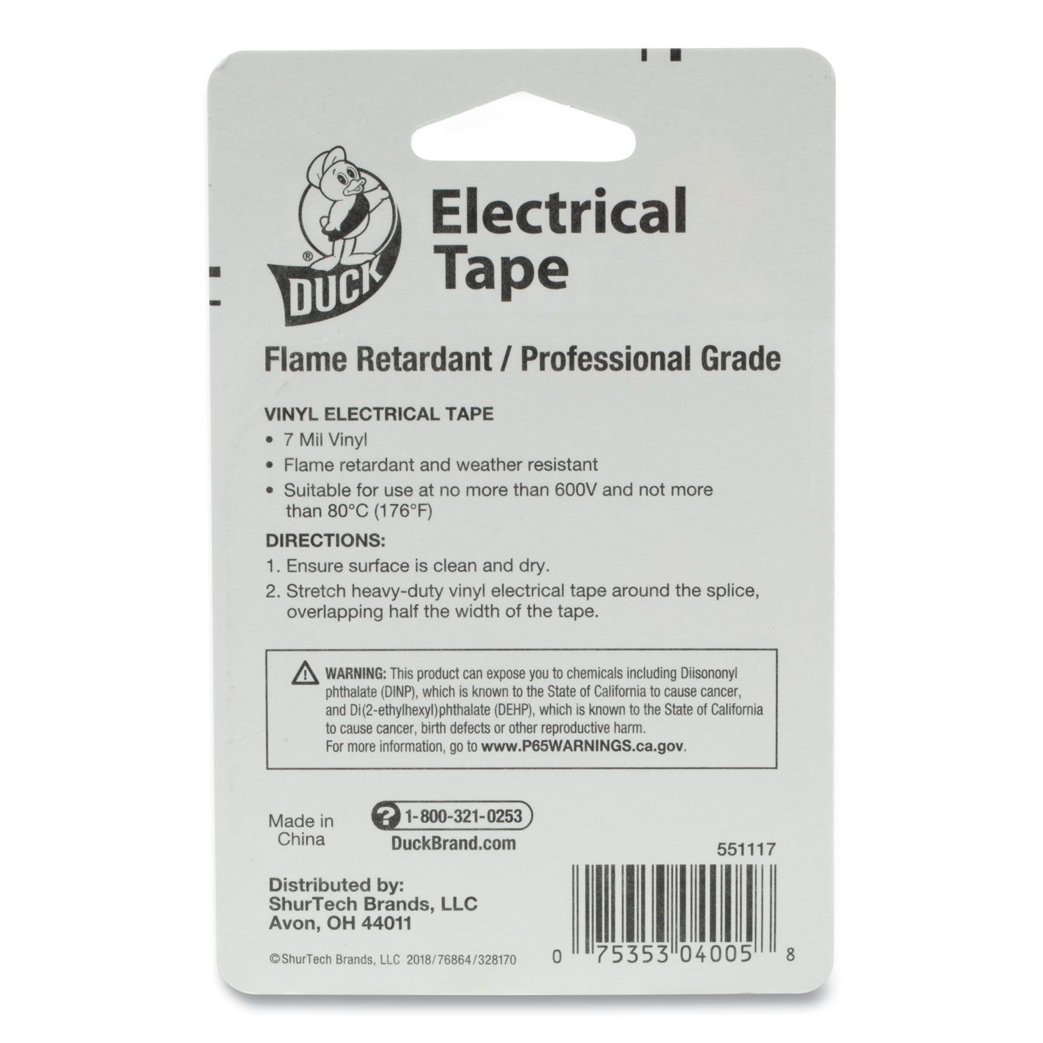 Duck Brand Electrical Tape, 3/4" X 66', Black: