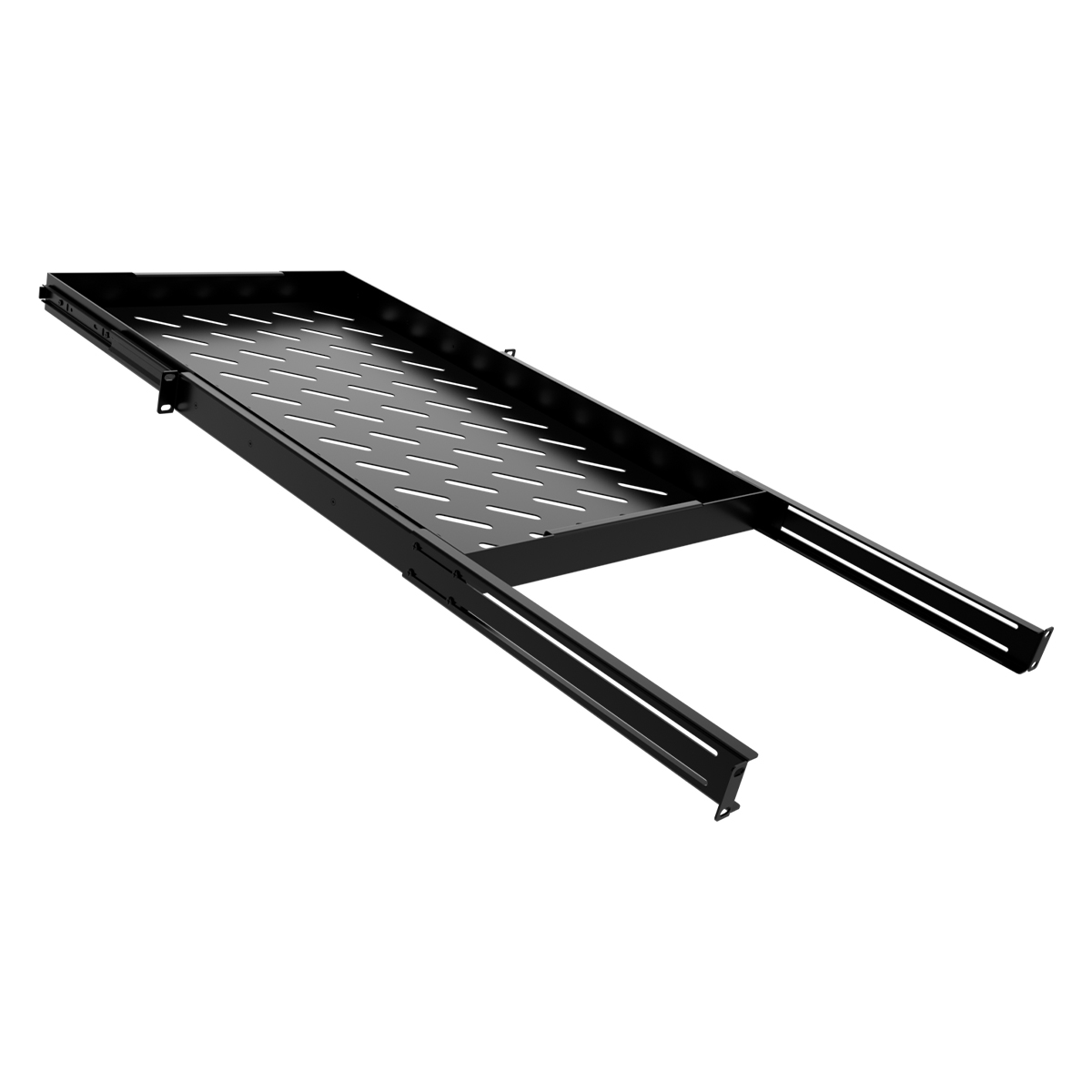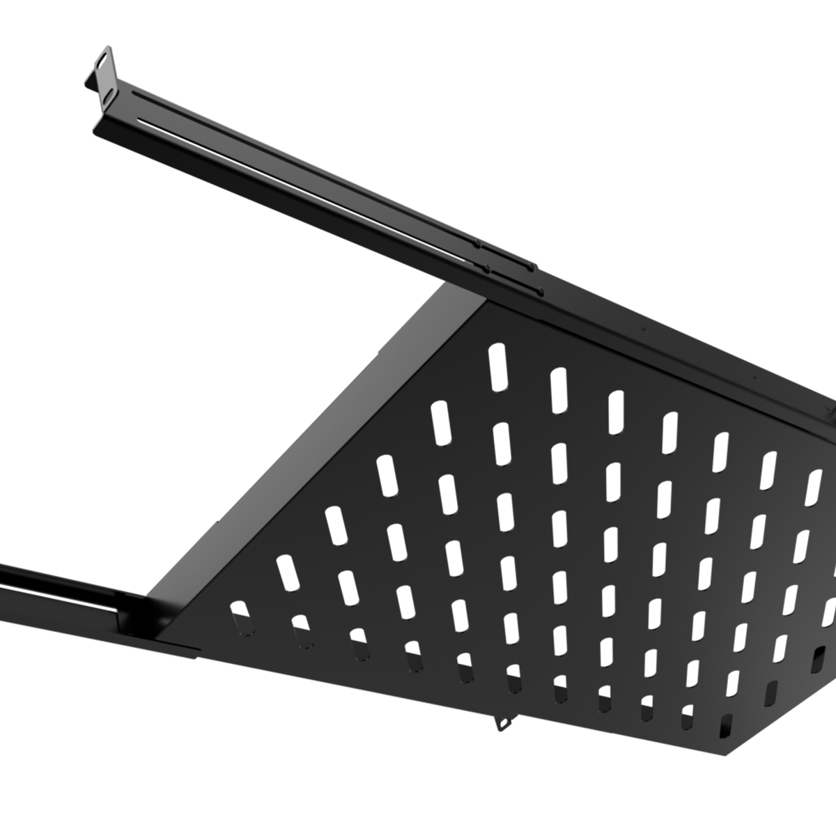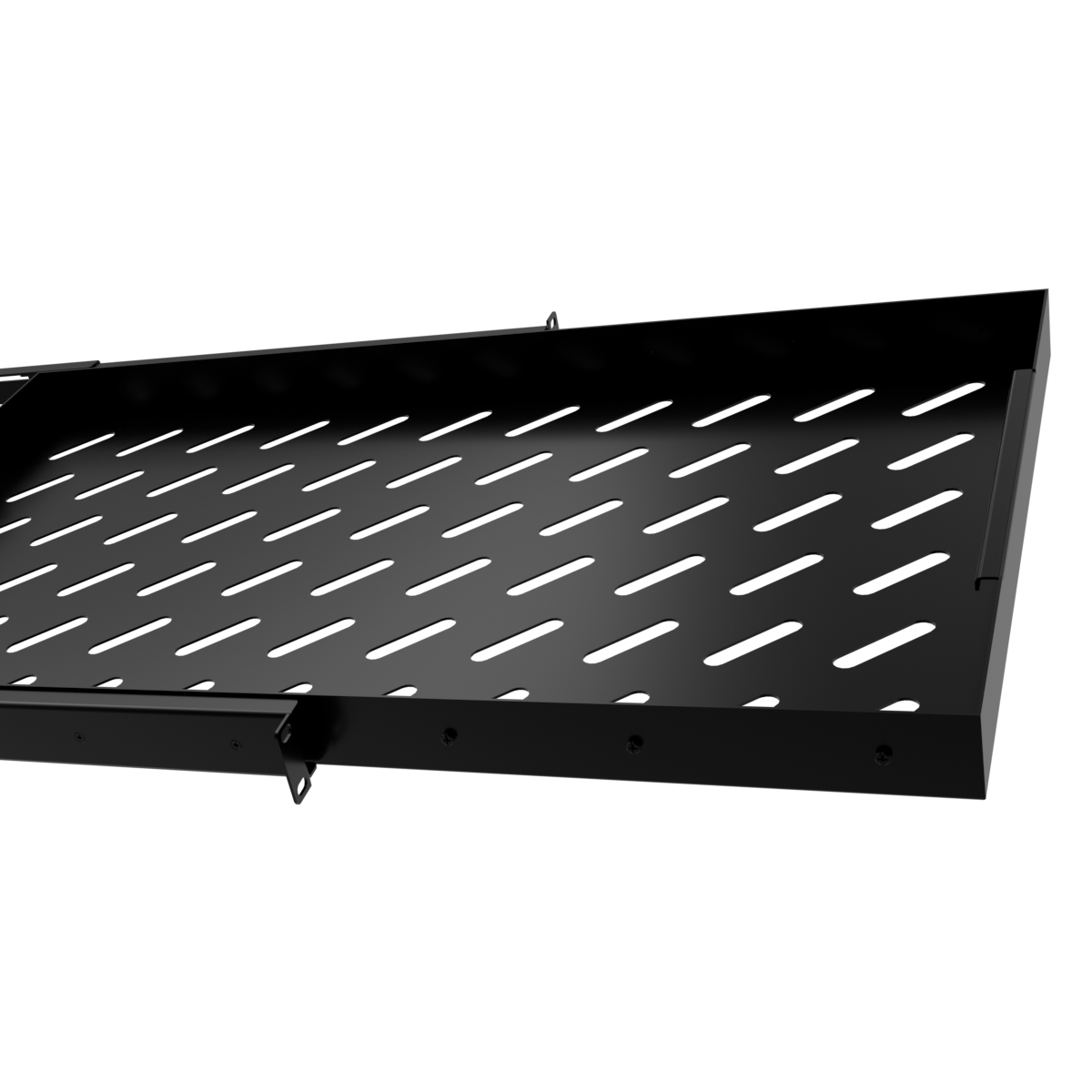 With 1 sliding trolley on each side they allow you to handle whatever you want on this tray that is sliding out and you can work freely without having to arrange the cables so you can see what happens freely is strong resistant and safe also protects your friction team and others.It is also designed in black color to improve the vision of the appearance of your Rack, and this also offers protection against corrosion, oxidation, scratches, detachment, strong acids and alkaline erosion, to extend the maximum performance of this product, it has multiple holes for to be able to place it according to the need you have, the tray is also designed in resistant steel to withstand what is placed on top, also do not worry about the heat that your equipment may produce since it has ventilation slits for under it to avoid overheating at any cost.