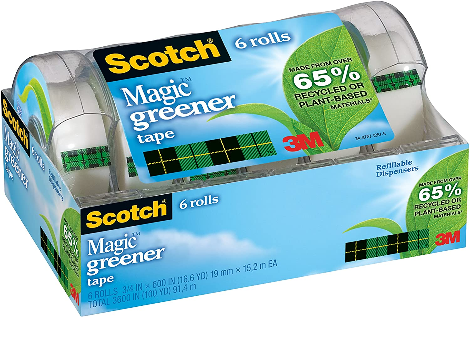 Scotch 6123 Eco Friendly Magic Tape with Dispenser 3/4-Inch x 600-Inch 6pack - Clear