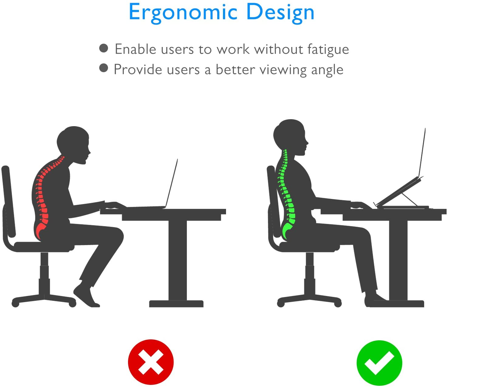 - Ergonomic design: the laptop stand raises your laptop, notebook, iPpad, etc. for maximum comfort, reducing eye and neck strain, and promoting good posture