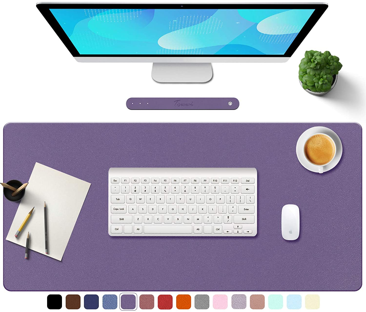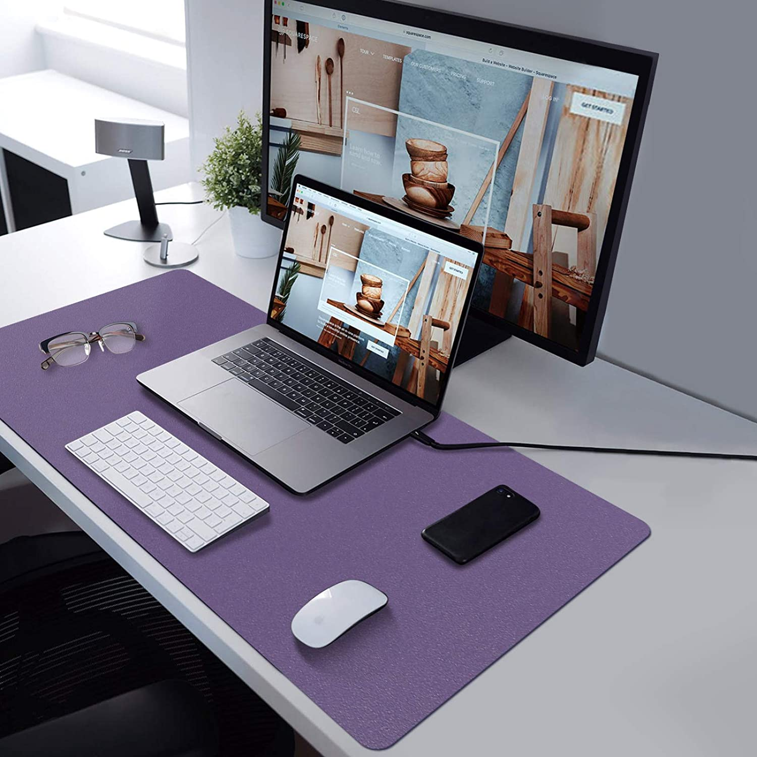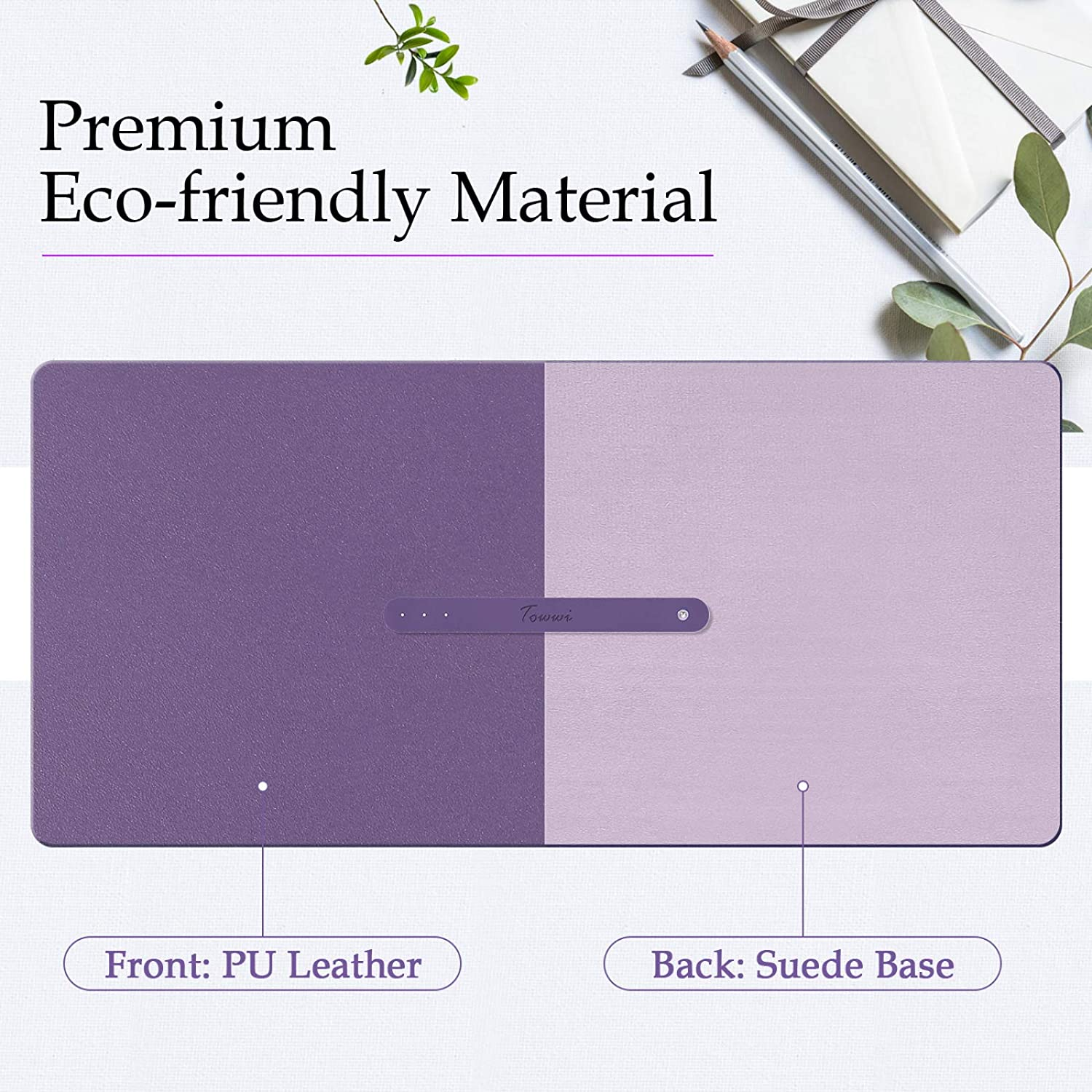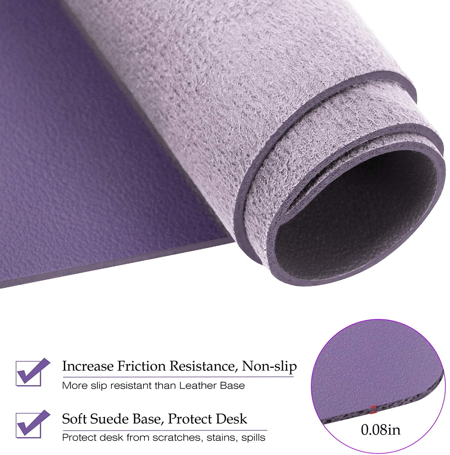 TOWWI PU Leather Desk Pad with Suede Base, Multi-Color Non-Slip Mouse Pad, 32” x 16” Waterproof Desk Writing Mat, Large Desk Blotter Protector (Voilet)