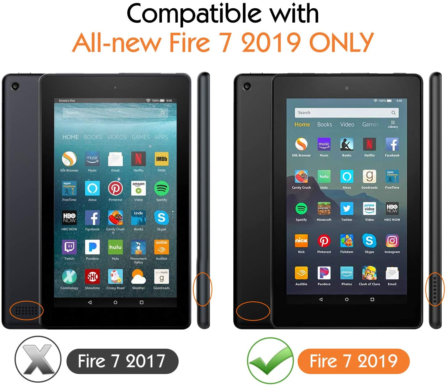 - Perfectly compatible with All-New Amazon Kindle Fire 7 Tablet (9th Generation - 2019 Release). Automatically wakes or puts your device to sleep when the lid is opened and closed.