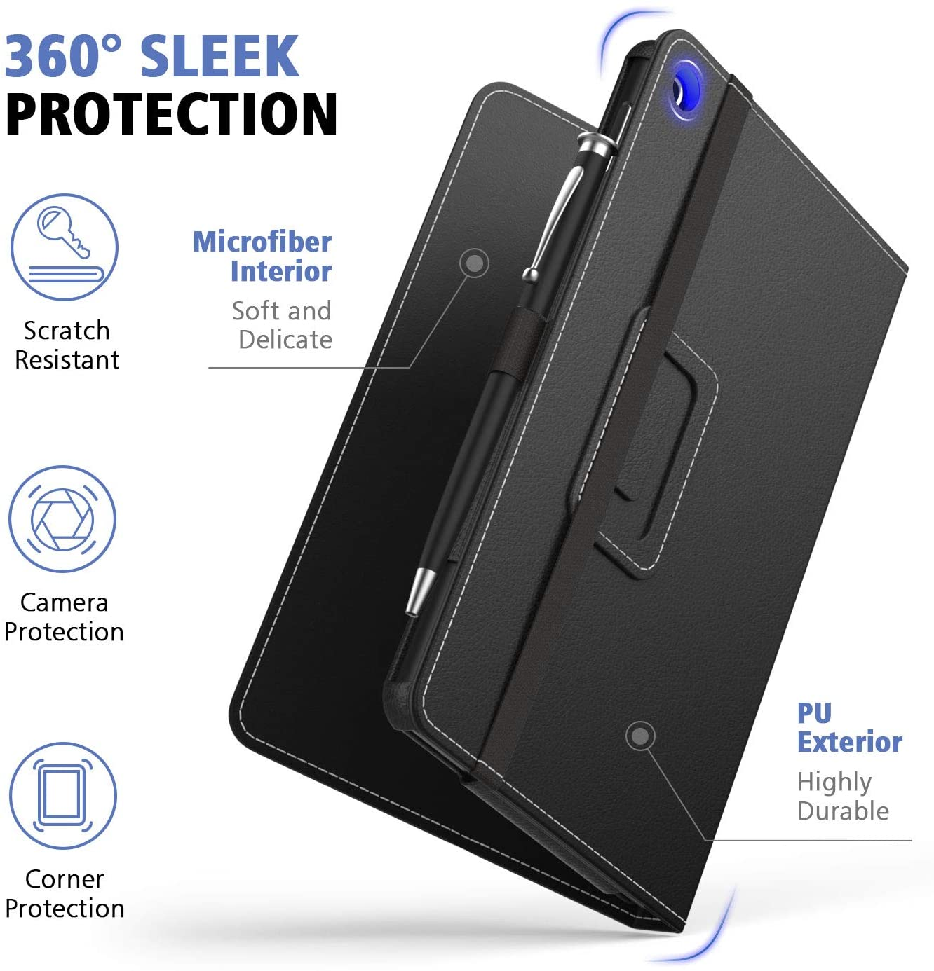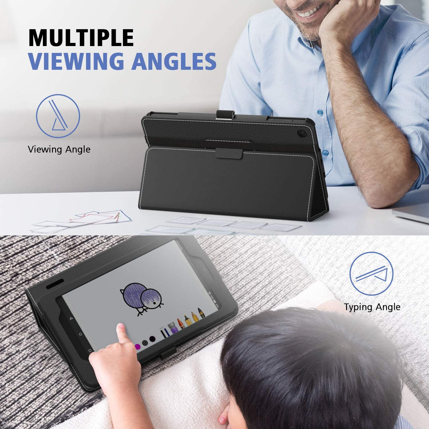 MoKo Case Fits Kindle Fire 7 Tablet (9th Generation, 2019 Release), Premium PU Leather Slim Folding Stand Shell Multiple Viewing Angles Cover with Auto Wake/Sleep - Black