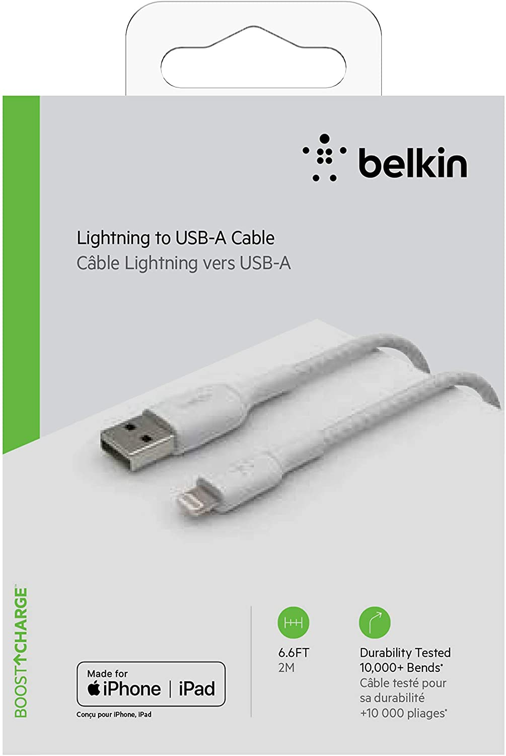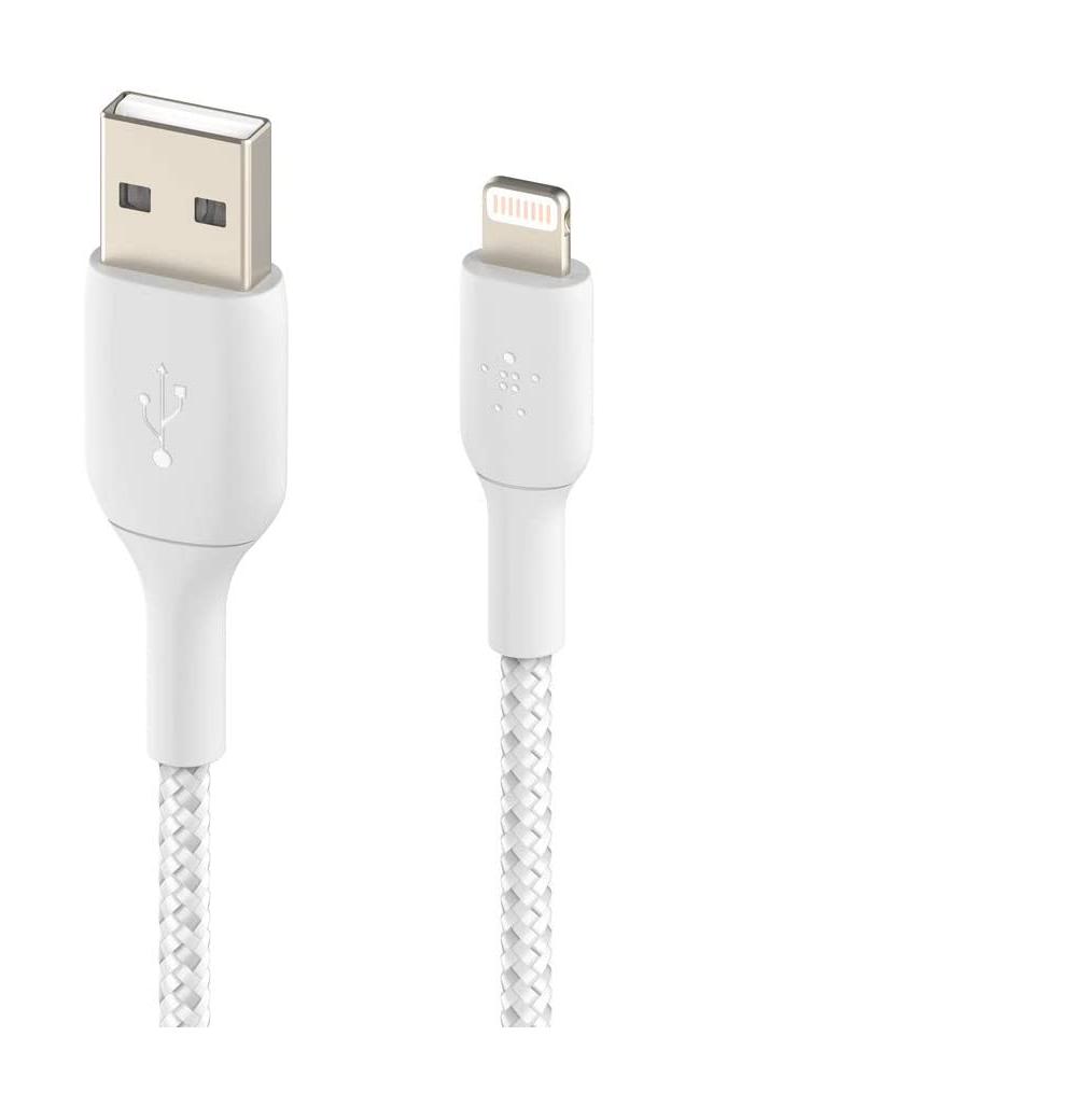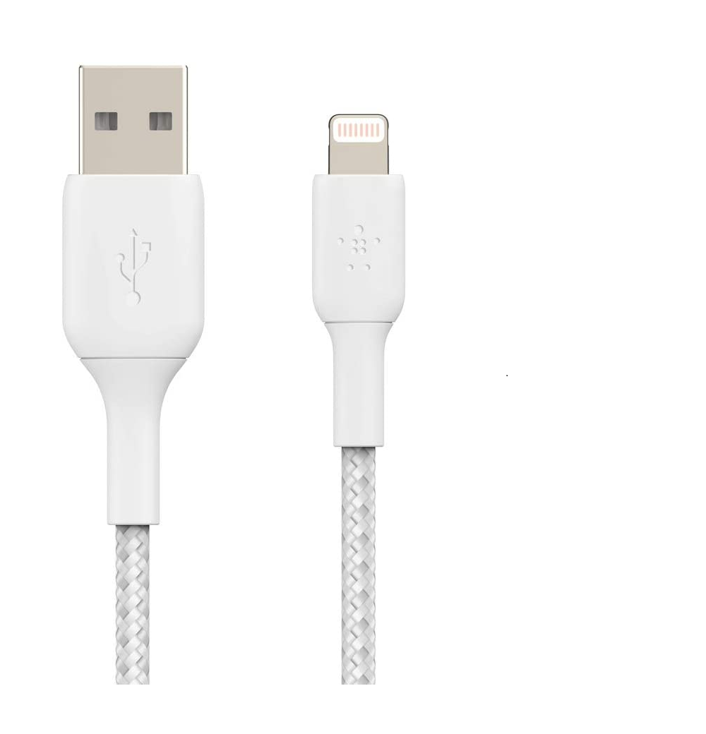 Belkin iPhone Charging Cable (Braided Lightning Cable Tested to Withstand 1000+ Bends) Lightning to USB Cable, MFi-Certified iPhone Charging Cord (3ft/1m, White) (CAA002bt1MWH)