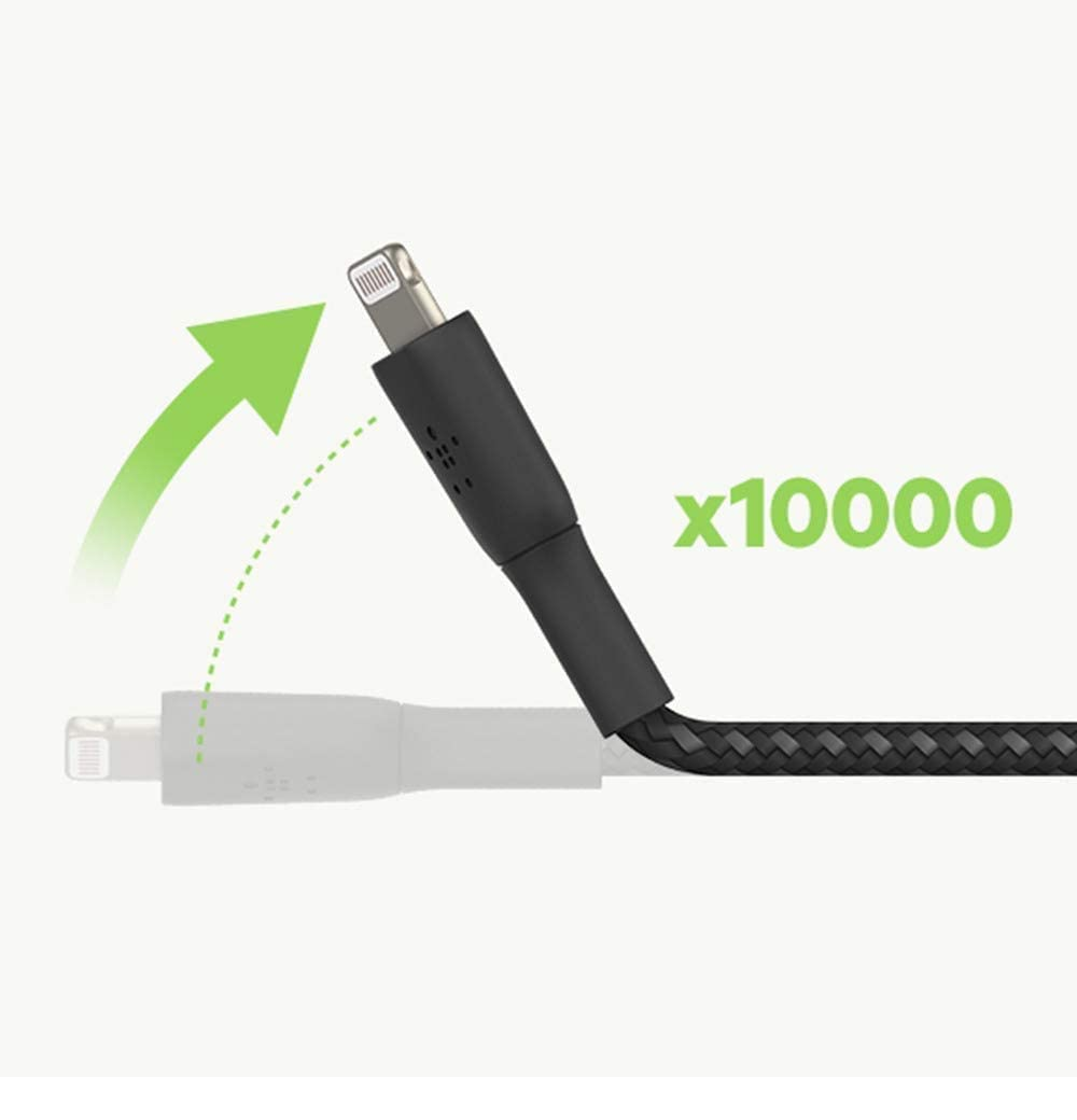 Charge and sync your iPhone and iPad, or transfer music, photos, and data from any USB-A port with an MFi-certified connection. Enhanced braided nylon provides long-lasting durability as well as a premium look and feel to complement your devices. Testing to 10000+ bends* assures longevity.