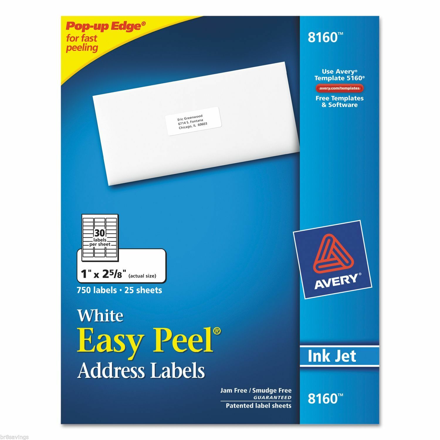 Avery® Easy Peel Mailing Address Labels, Inkjet, 1 x 2 5/8, White