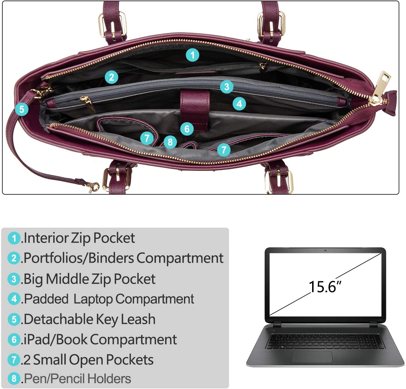 Lovevook Laptop Bag 15.6" Large Office Handbags - Burgundy