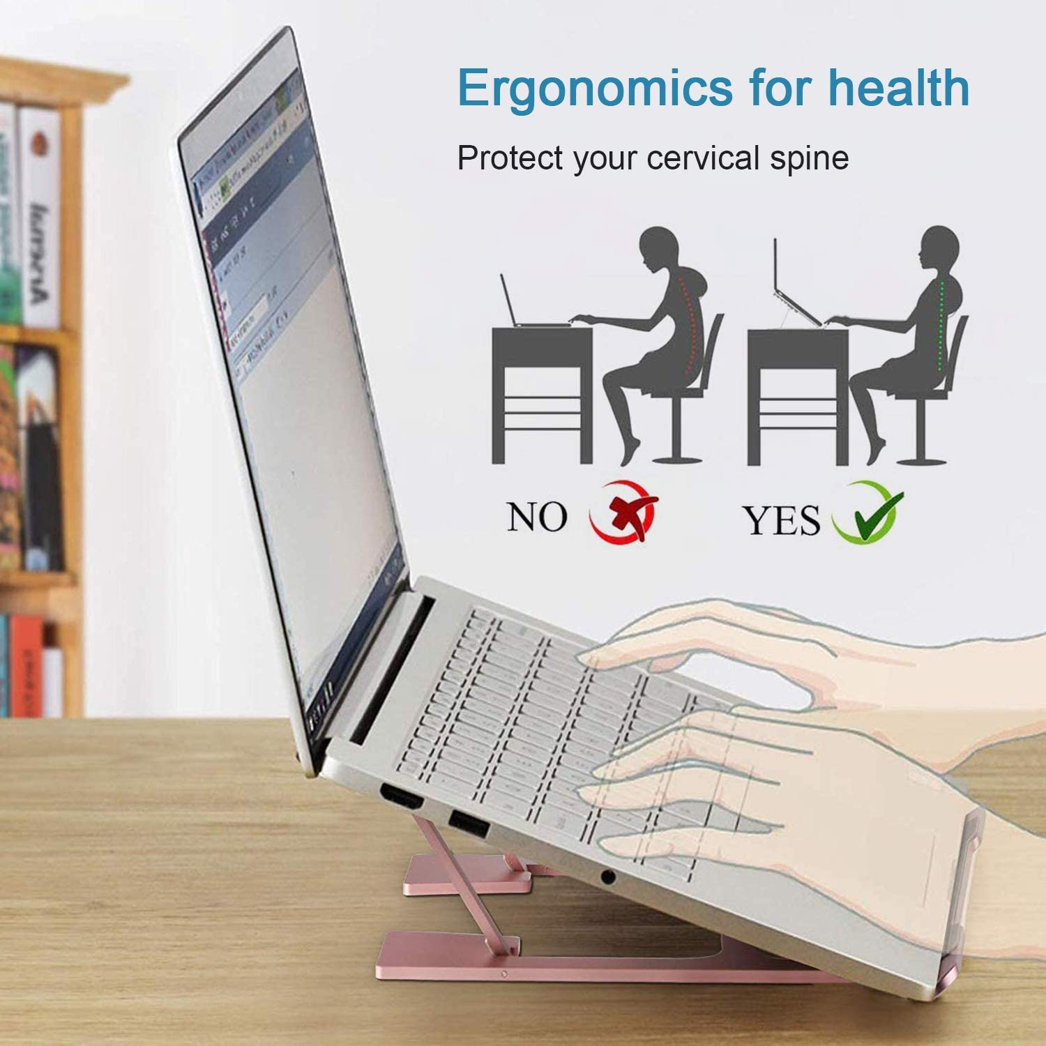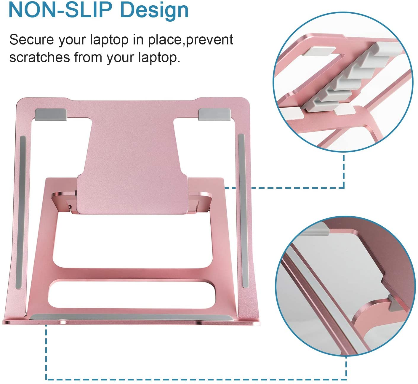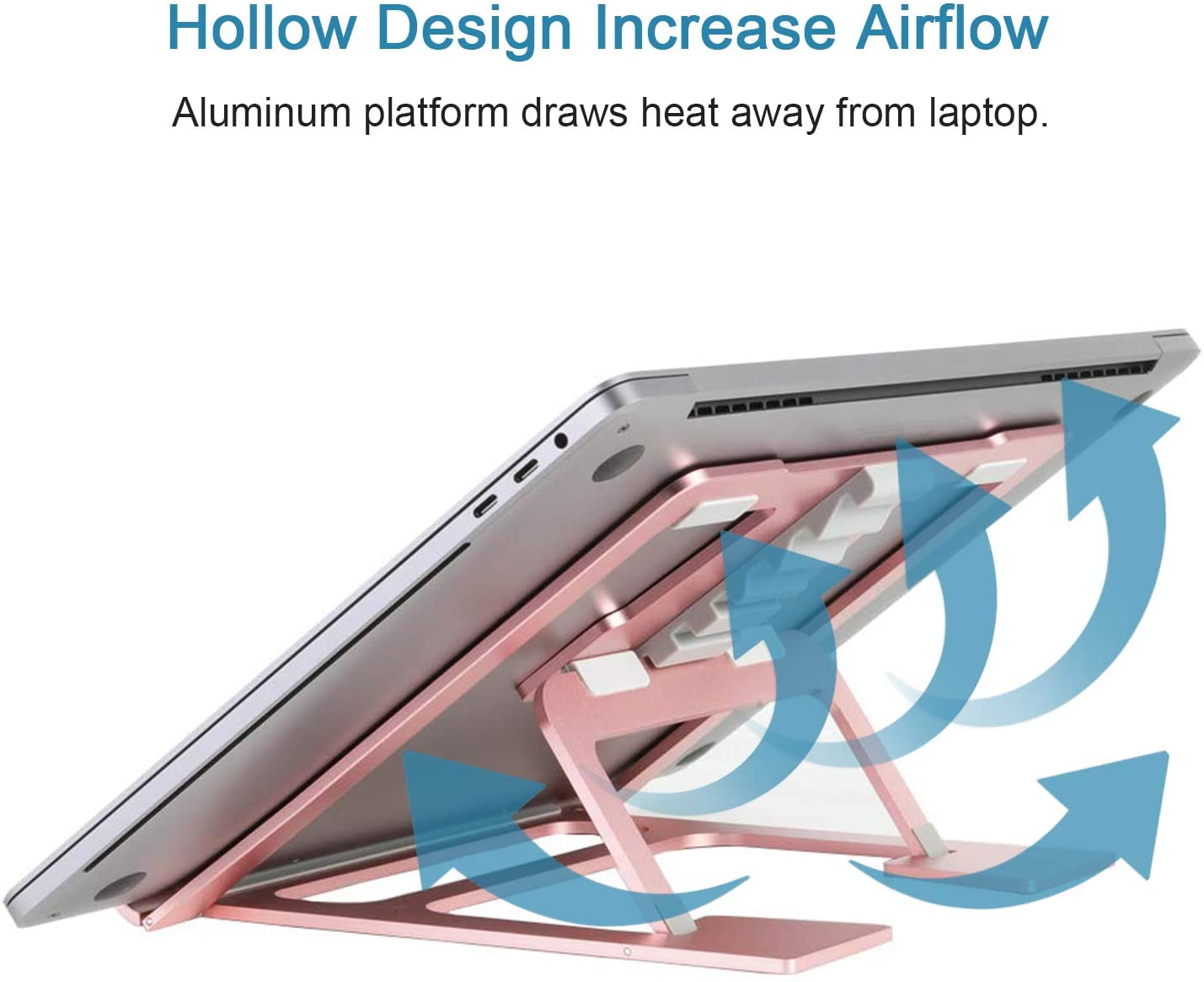 - Reduces Heat Buildup-- Aluminum's high heat conductivity can Absorb and Conduction heat from the MacBook,and enables MacBook stand to serve as a heat sink.By lifting laptop off the desktop, it dissipates heat buildup and keeps the laptop stand cooler, easing the strain on the battery and internal components, keep your laptop stand running in good condition.