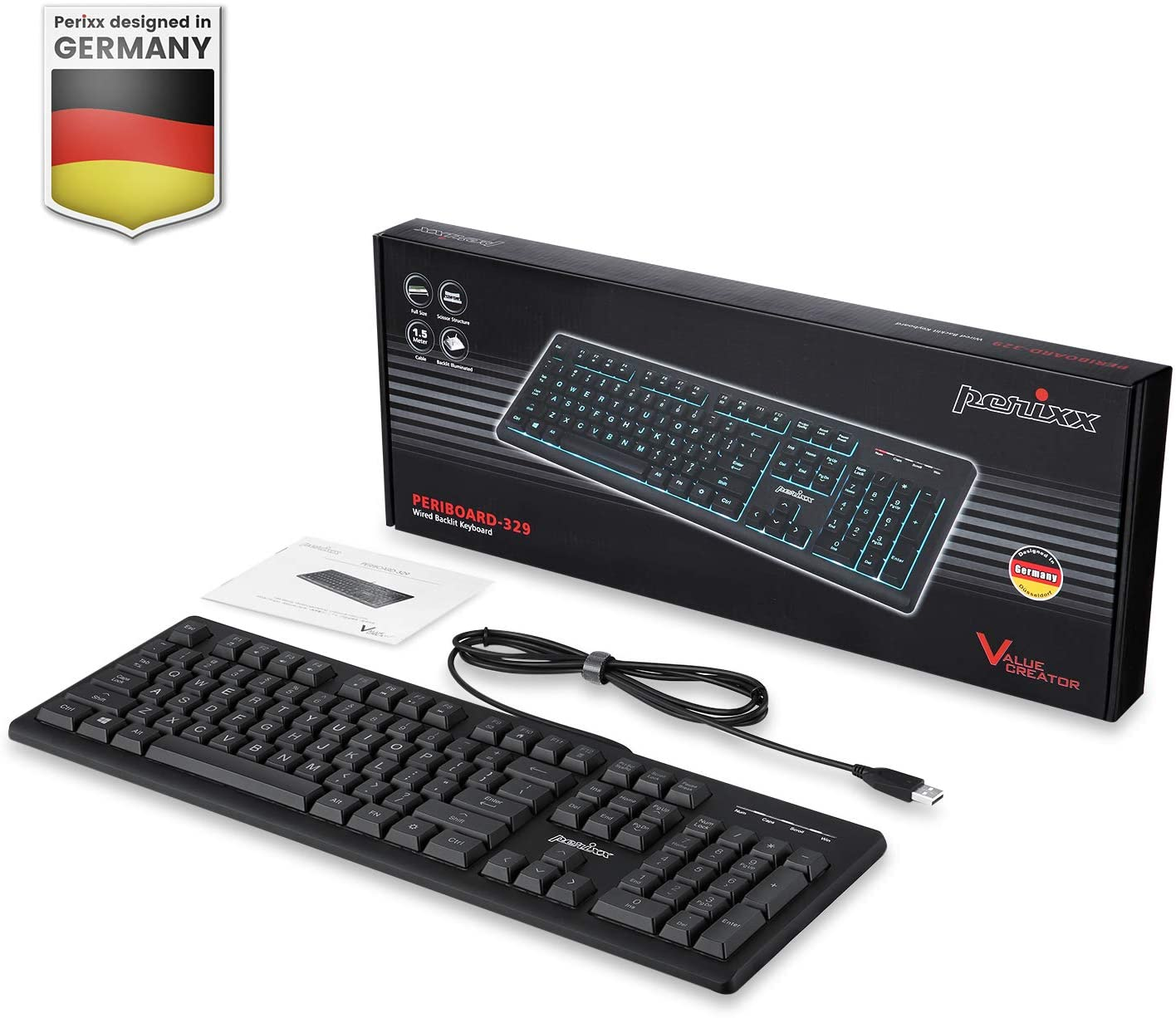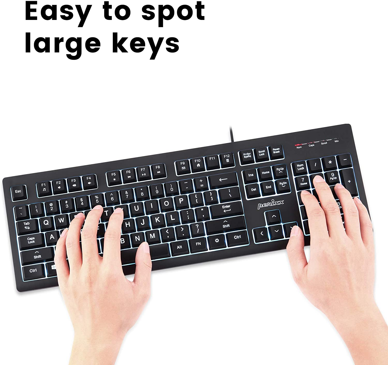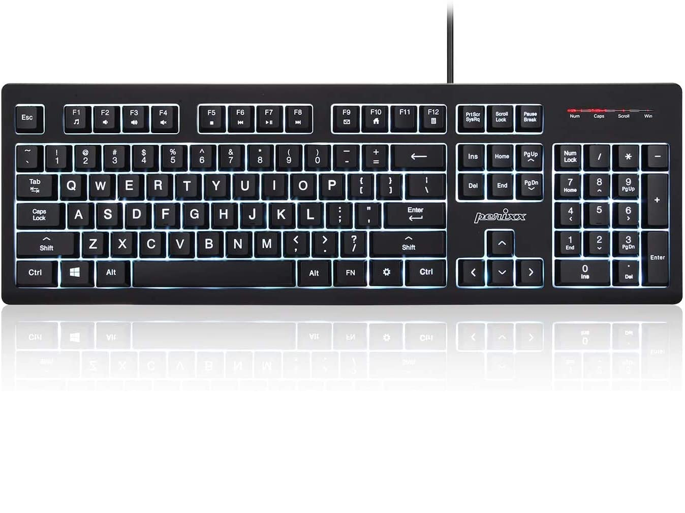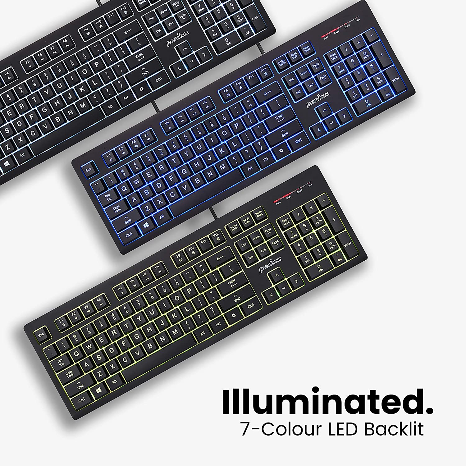Perixx PERIBOARD-329 Wired USB Backlit Keyboard with 7-Color Illuminated LED - Black (11663)