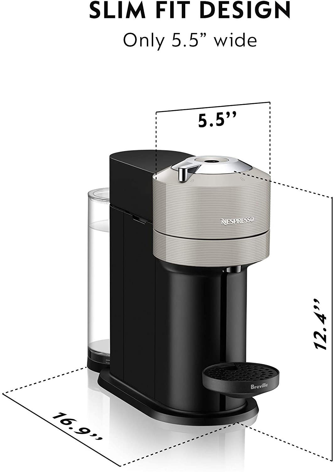 - QUALITY DESIGN: Nespresso's newest innovation, Vertuo Next is the most compact, sustainable and smart Vertuo single-serve coffee maker yet It’s made of 54% recycled materials, is only 5 5 inches wide It also comes with a removable water tank
