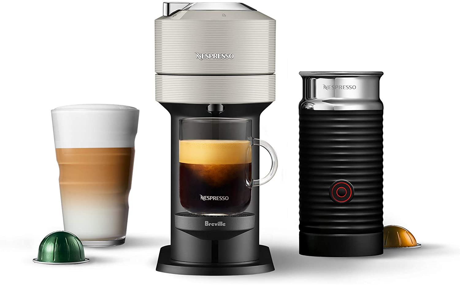 Nespresso Vertuo Next Coffee and Espresso Machine with Aeroccino by Breville - Single Serve Coffee & Espresso Maker, One Touch to Brew - Light Grey
