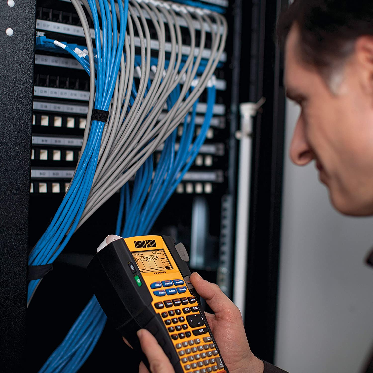 The DYMO Rhino 5200 label maker kit includes a hardshell carrying case to protect the label printer. A Rechargeable lithium-ion battery pack and AC Adapter offer versatile power options for portable use. Print your choice of labels immediately with the included 3/4-inch white flexible nylon tape and 3/8-inch white vinyl tape. A CD with user manual helps you learn all the intricacies of using the machine.