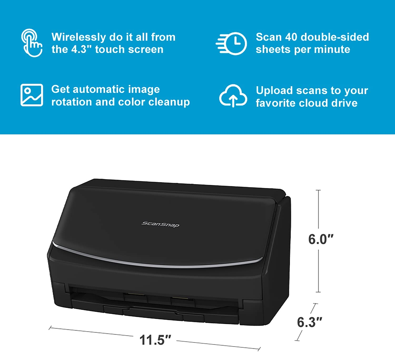 Fujitsu ScanSnap iX1600 Versatile Cloud Enabled Document Scanner for Mac or PC, Black