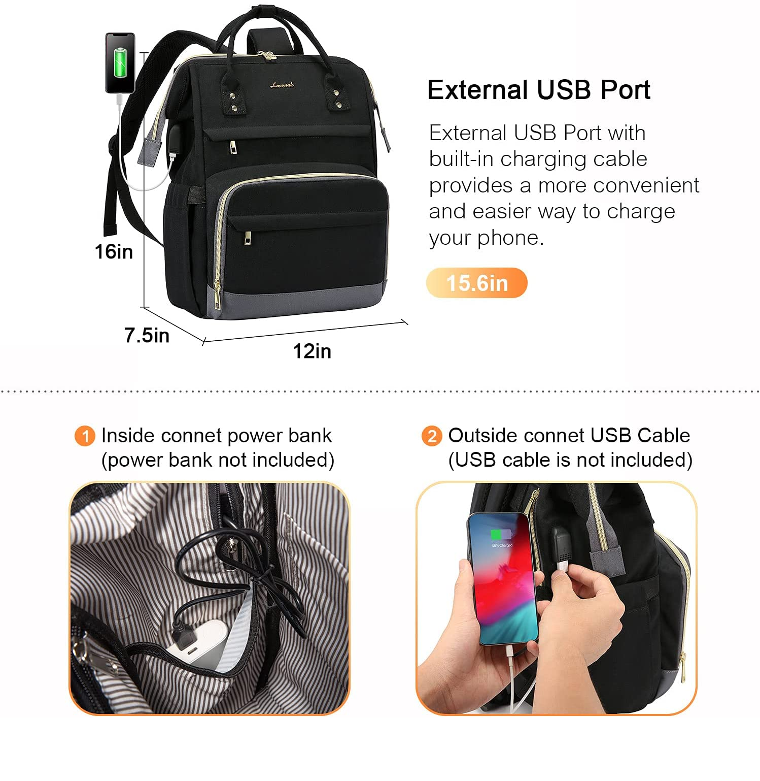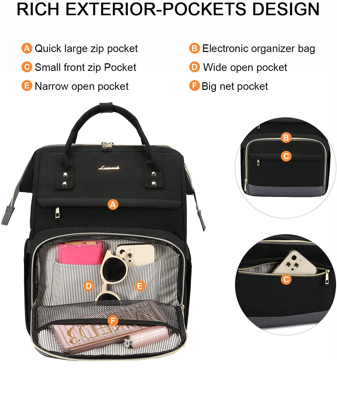Laptop Backpack Women Teacher Backpack Nurse Bag Work Backpack Purse 15.6-Inch