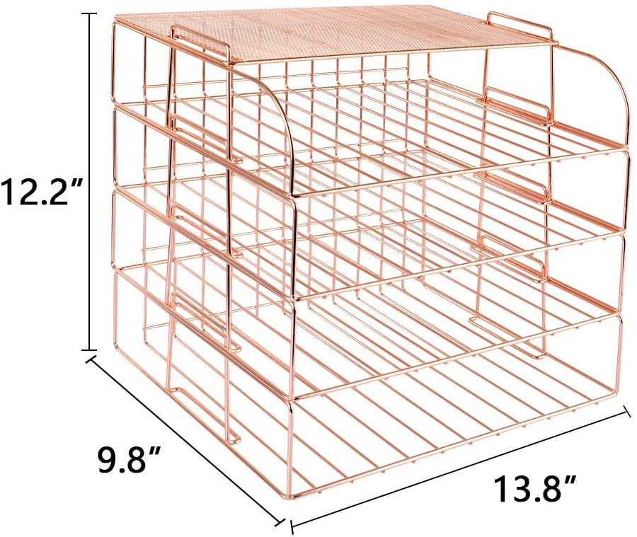 Stackable Paper Tray Organizer Desk File Organizer, 4 Tier Desk Organizers and Accessories(Rose Gold)