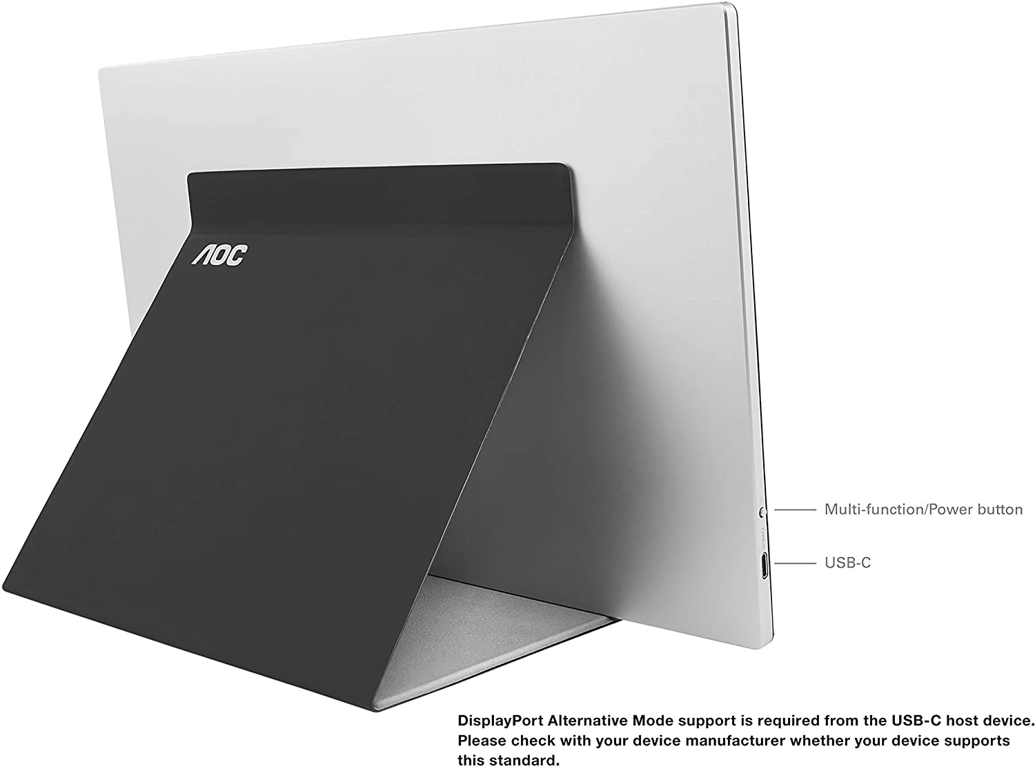 - AOC 16-inch class (15.6” viewable) USB-C portable monitor with IPS screen and full HD 1080P (1920x1080) resolution