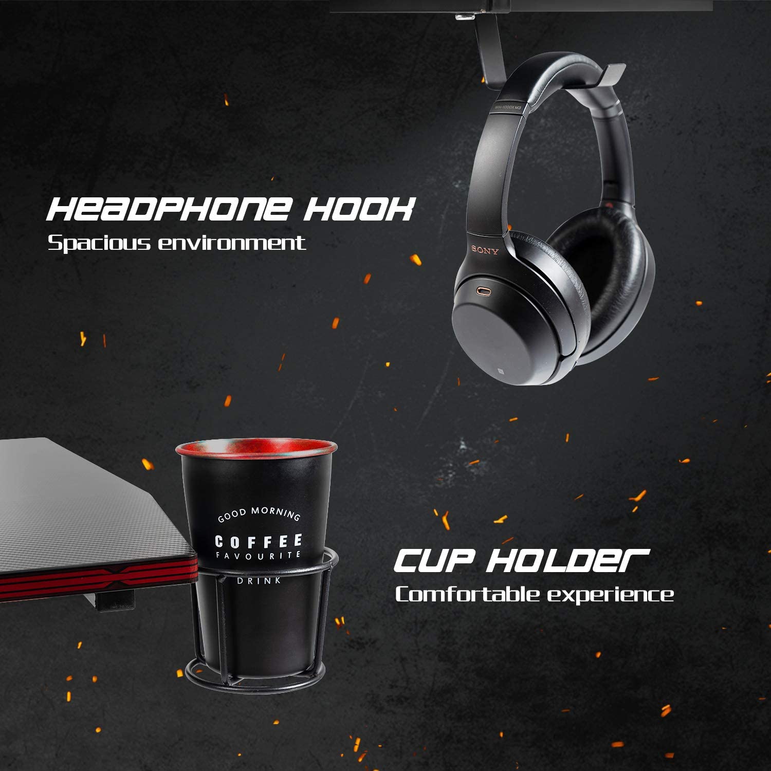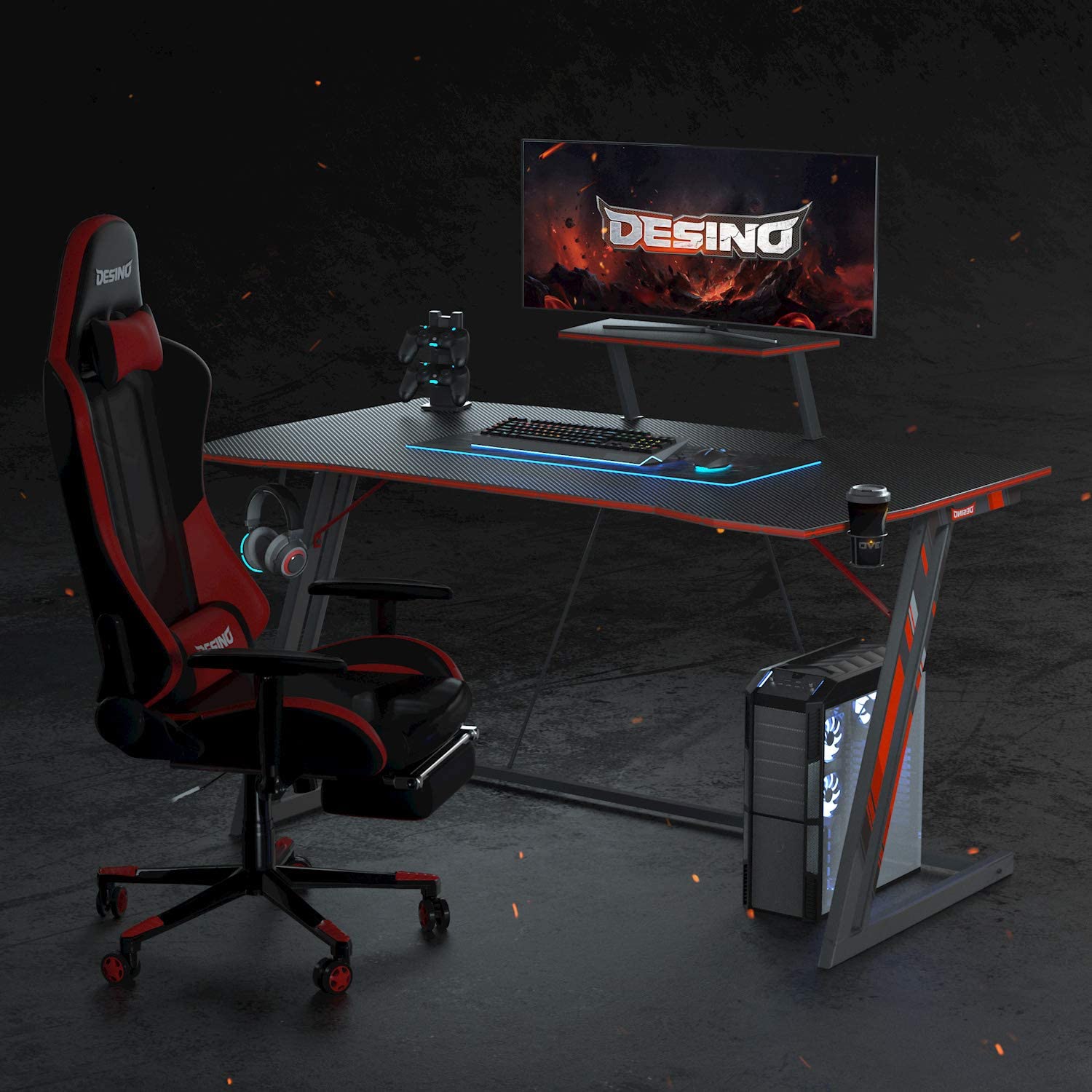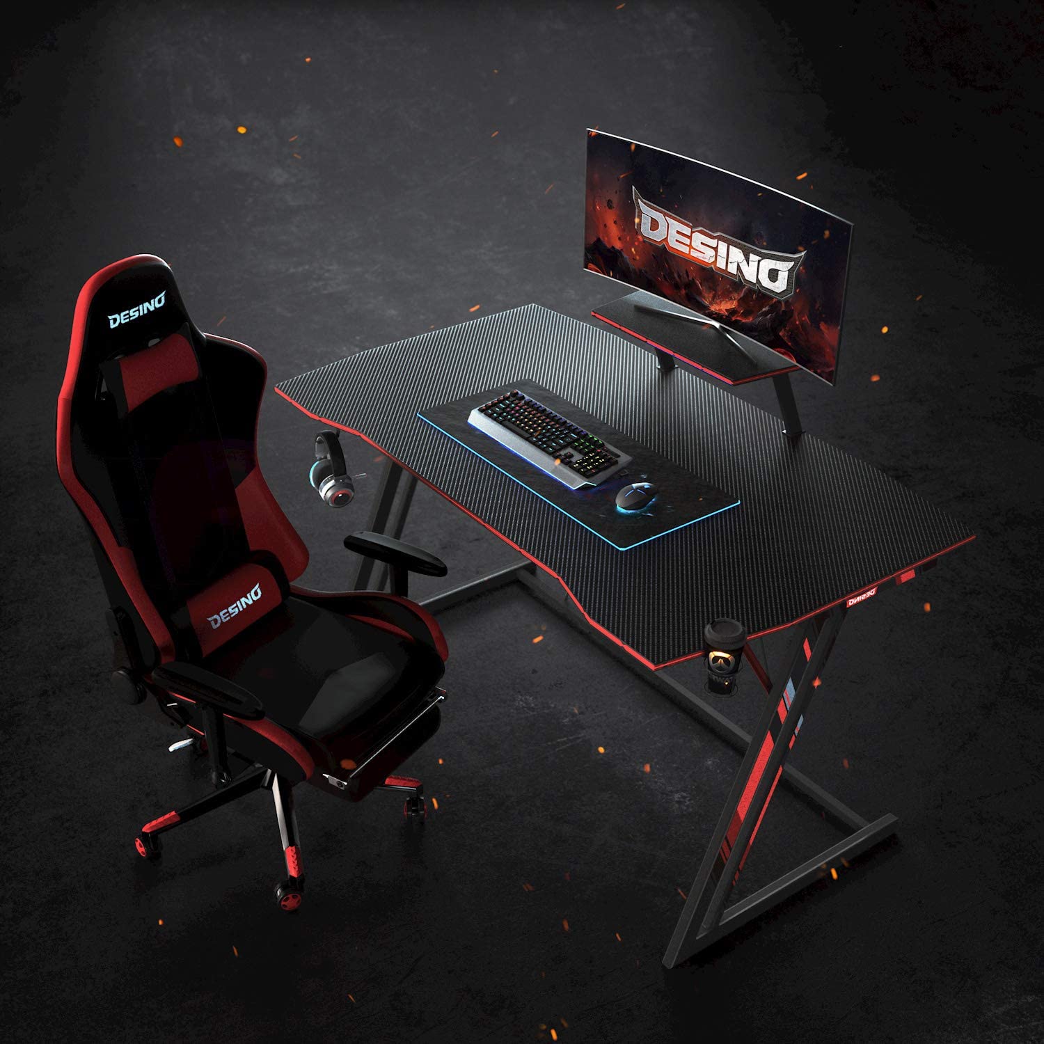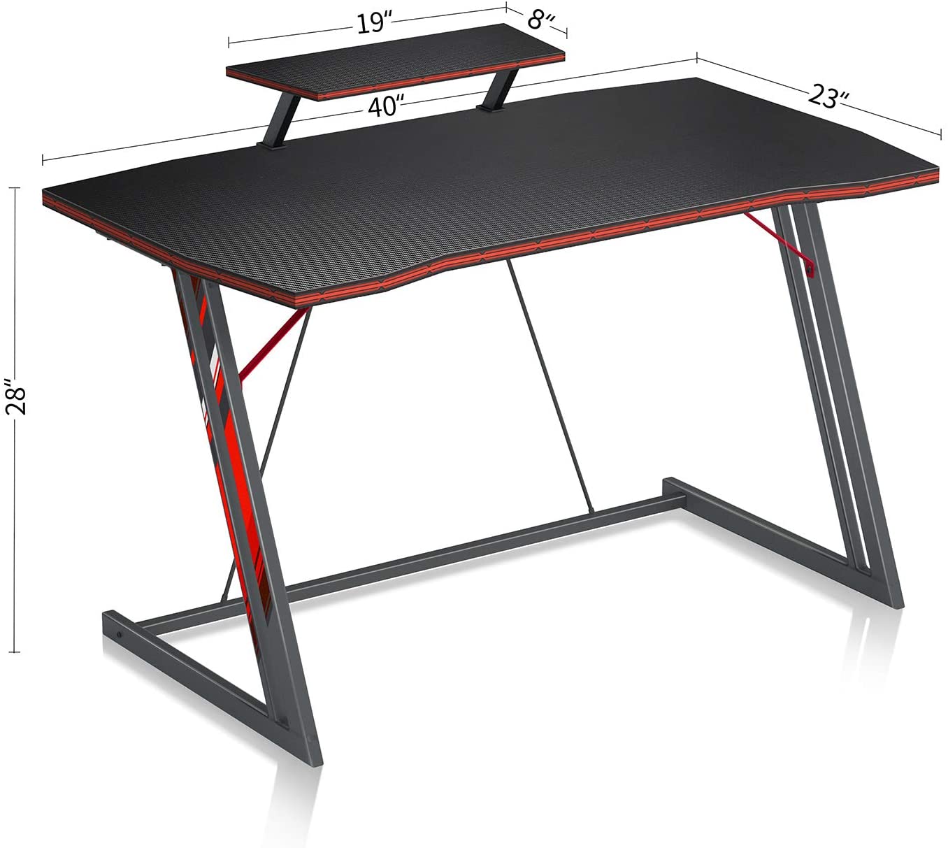 DESINO Gaming Desk 40 inch PC Computer Desk, Home Office Desk Gaming Table Z Shaped Gamer Workstation with Cup Holder and Headphone Hook, Black