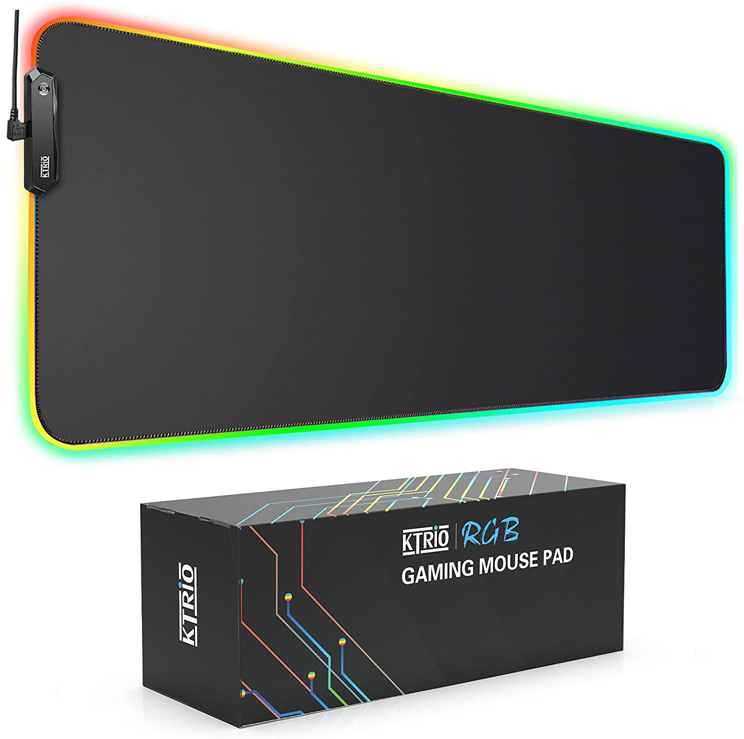 KTRIO RGB Large Gaming Mouse Pad with Stitched Edges, LED Extended Mousepad with Superior Micro-Weave Cloth, Non-Slip Base, Water Resist Keyboard Pad, Desk Mat for Gamer, Office & Home, 31.5 x 11.8 in