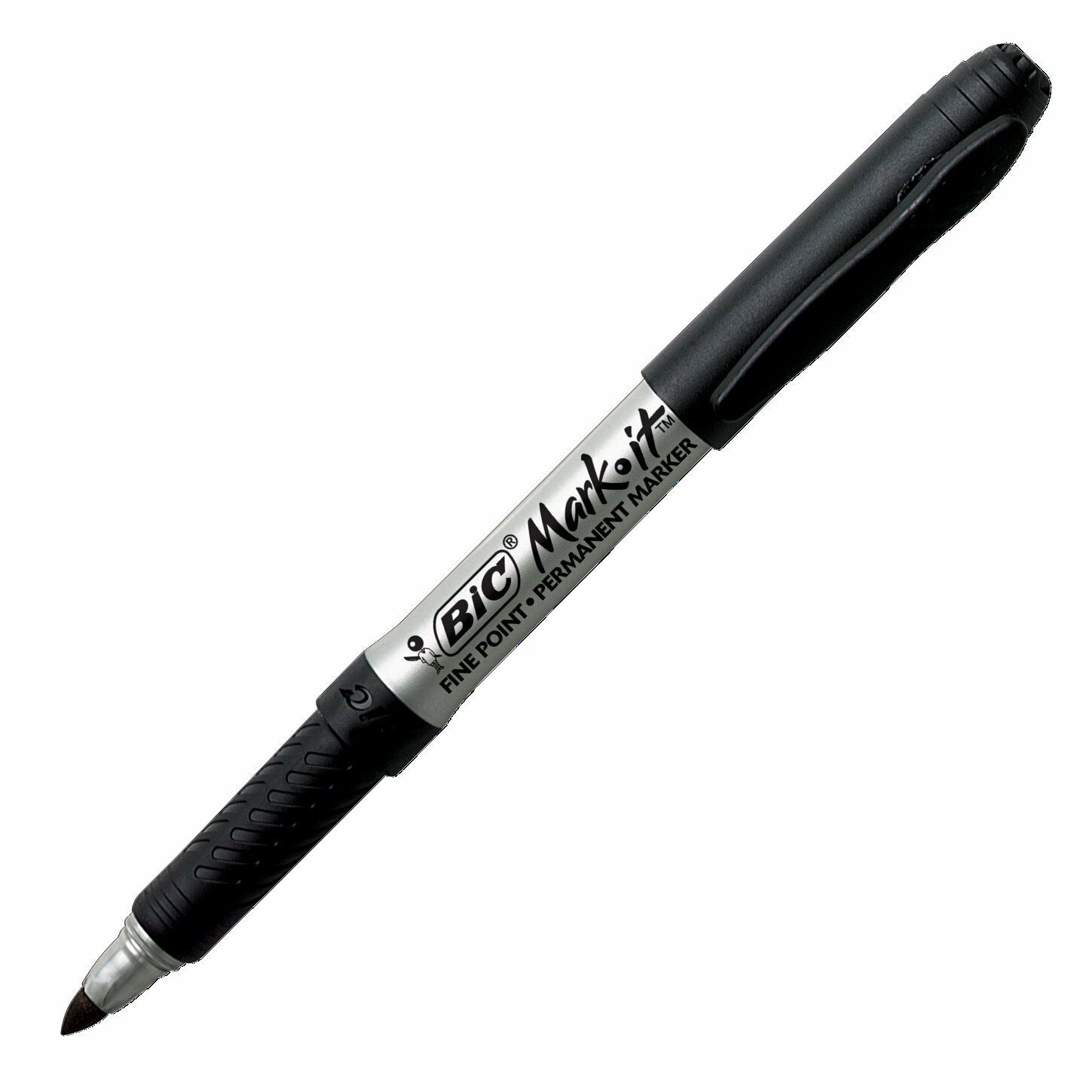BIC® Mark-ItTM Fine Point Permanent Marker Bright colors and smooth ink flow. Textured rubber grip for comfort and control. Marks on glass, metal, CDs, coated paper, photos, plastics. Quick-drying ink resists water. Nontoxic. Bright color and smooth ink flow with a fun, fashionable appearance. Fine nib is ideal for detailed marking. Textured rubber grip adds comfort and control. Marks on glass, metal, CDs, coated paper, photos, plastics. Long cap-off life. Vivid, quick-drying ink resists water