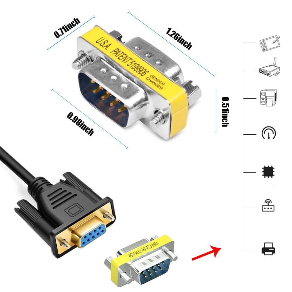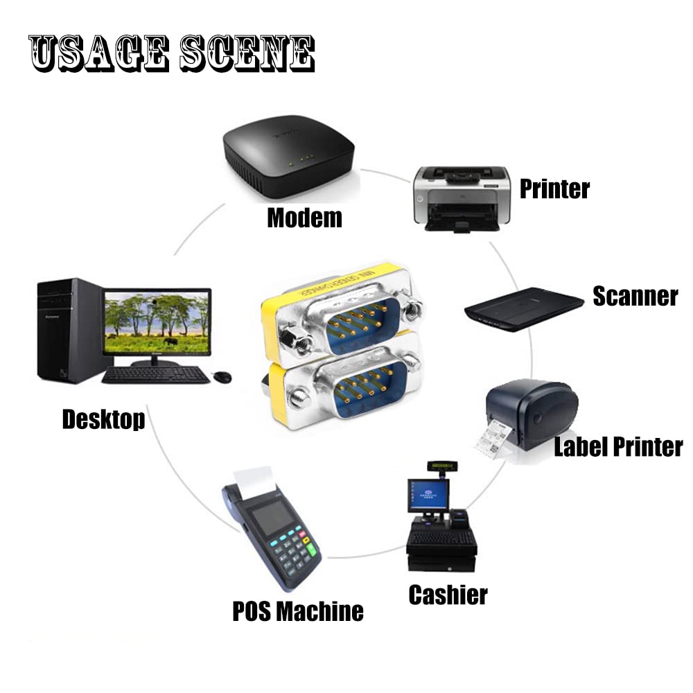 - PERFORMANCE: Allow you interconnect two 9 pin vga cables no matter your cables are male or female plugs. They can be used with PC, Modem,Printer,Scanner,Cashier,POS Machine and more.