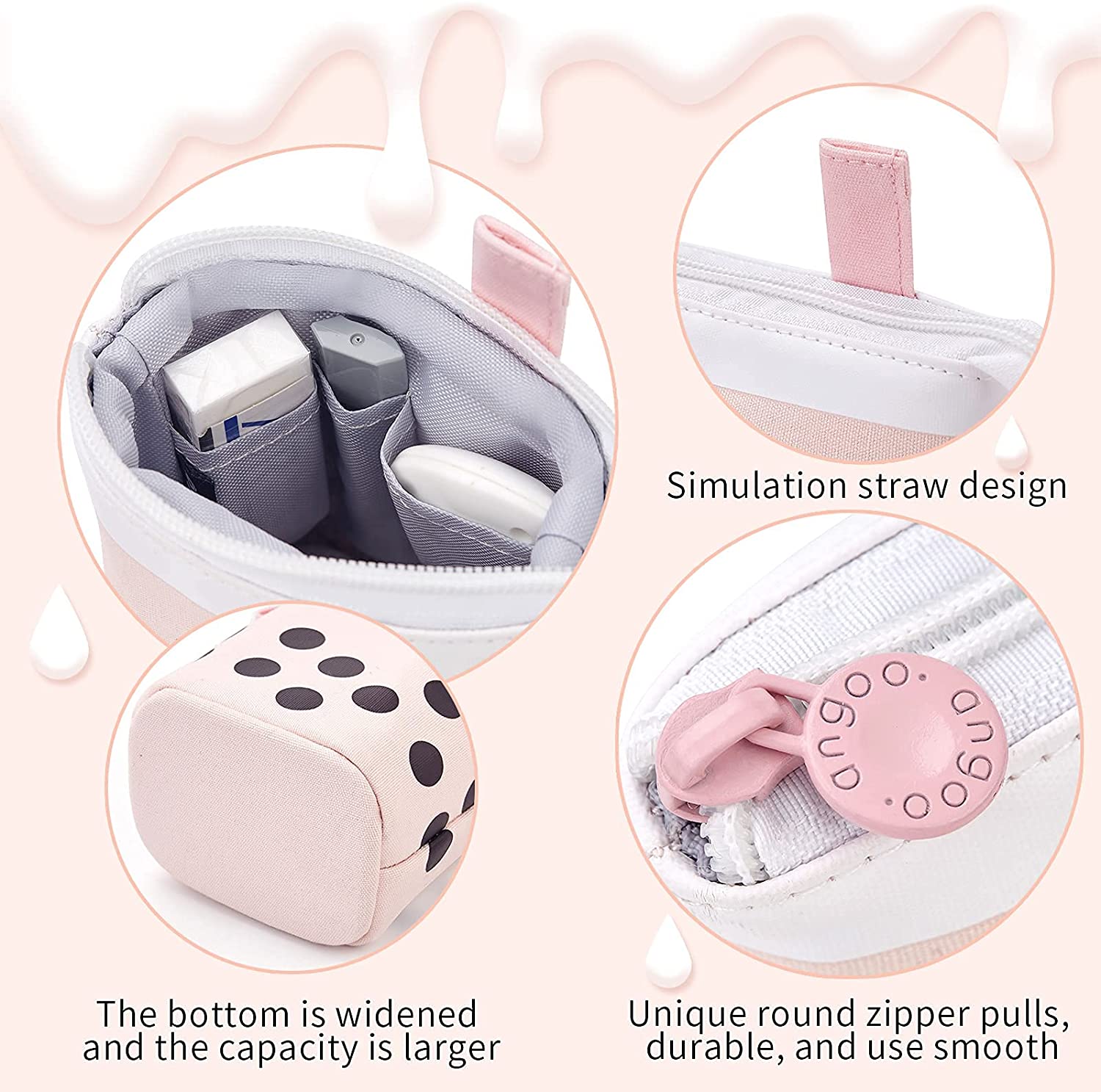 - CUTE DESIGN: This pencil case has a Boba tea shape with a straw, making your life full of fun. It is spacious enough to store and organize your stuff.