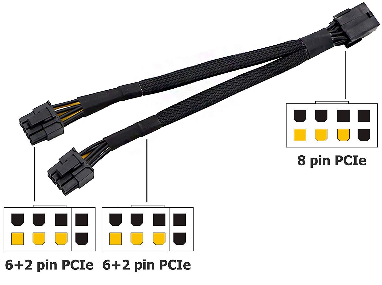 - A female end to connect to the power connector of the power supply and two male ends to plug into the video graphics card; Compatible with 6-pin & 8-pin graphics cards from popular manufacturers from ASUS,ASRock,Radeon,AMD,Sapphire,EVGA and Gigabyte;