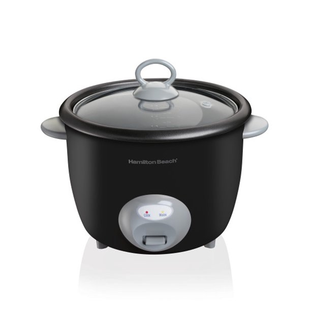 Hamilton Beach 20 Cup Capacity Rice Cooker Making delicious rice and whole grains is easy with the Hamilton Beach 20 Cup Capacity Rice Cooker. Just place the ingredients in the nonstick bowl, turn on, and the rice will cook perfectly on its own, giving you time to prepare the rest of your meal. You can easily cook quinoa, barley, or even Jasmine rice without worrying about boiling water, changing settings, or even the timer. The Hamilton Beach 20 Cup Capacity Rice Cooker will automatically shift to warm once the cook cycle is complete. And with a 20 cup cooked rice capacity, you’ll have enough to feed a crowd. Need a vegetable to go with dinner? Steam broccoli, asparagus, cauliflower and other favorites in the included steaming basket. Simply place the basket in the cooker during the rice cook cycle or on its own until it reaches desired tenderness. The glass lid makes it easy to peek at your food to see how it’s progressing. Clean up is a snap with the dishwasher safe nonstick cooking bowl and glass lid. Versatile and easy to use the Hamilton Beach 20 Cup Capacity Rice Cooker, now in black, takes a bit of the work out of home cooking. Features and Benefits • Versatile - cooks rice and grains from all over the world • Cook up to 20 cups of every kind of rice (10 cups uncooked) • Perfect rice every time • Automatically cooks, then shifts to warm • Steaming basket included Add a Side of Veggies Want to serve a vegetable side dish or dumplings alongside your rice? Use the optional steaming basket. Simply fill the basket and add to the cooker toward the end of your rice cooking cycle or use it on its own. Corn, fresh green beans, and asparagus come out tender and delicious.