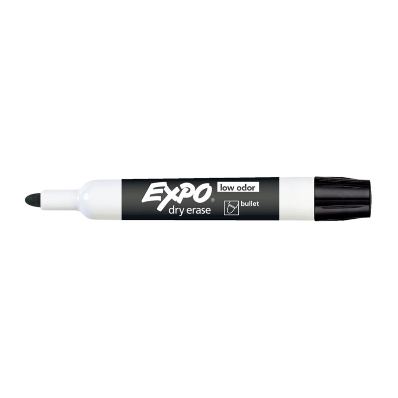 EXPO Low Odor Bullet Dry Erase Markers offer the best solution for marking on whiteboards and most non-porous surfaces. These dry erase markers use a specially formulated, alcohol-based ink with virtually no odour. The EXPO markers feature vivid, quick-drying ink that is easy to see from a distance and a bullet tip that creates bold, thick lines. The dry erase marker ink erases cleanly and easily from whiteboards and most non-porous surfaces with a dry cloth or eraser. Use your EXPO Dry Erase Markers to track, schedule and present.