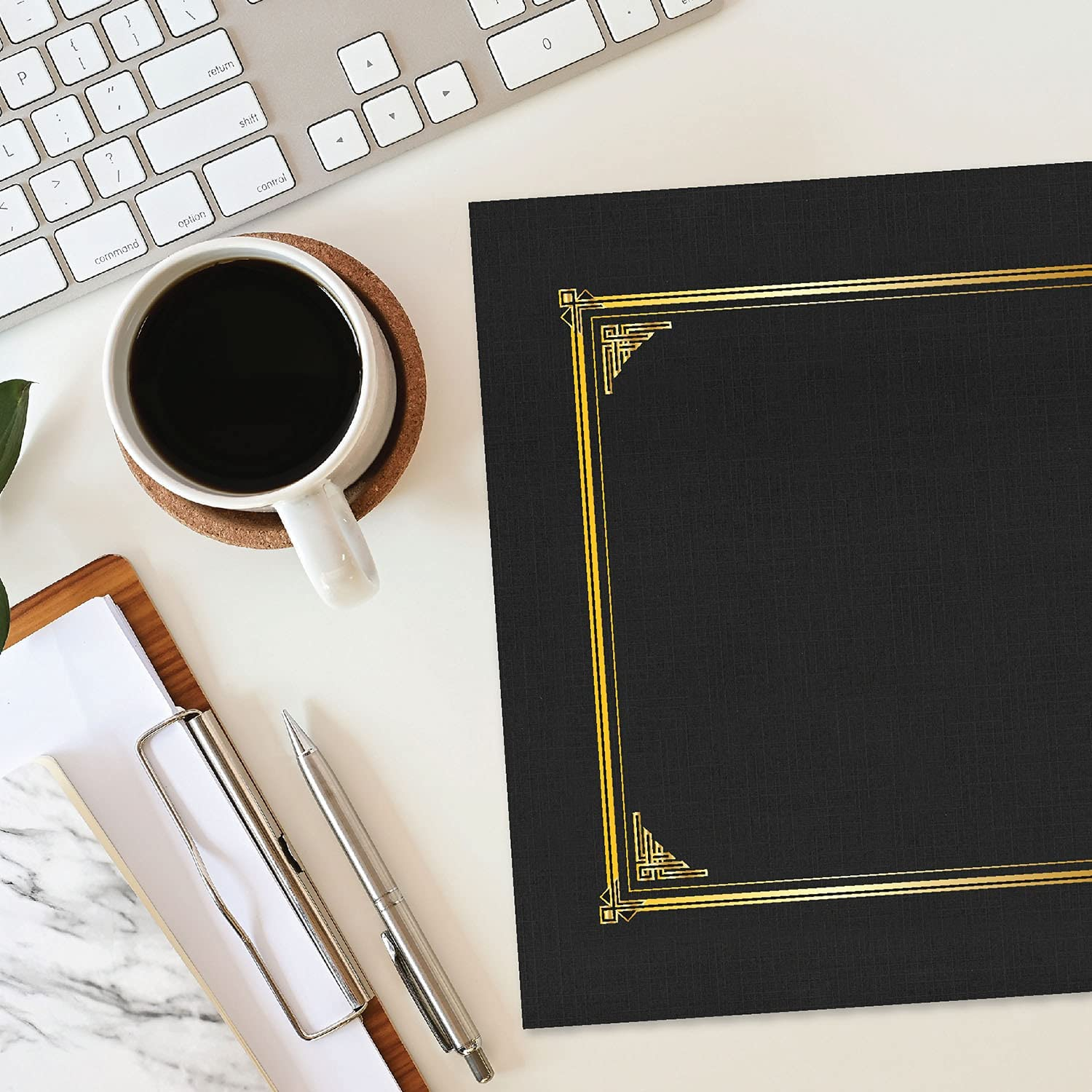 - Cover stamped with classic gold foil border designs.