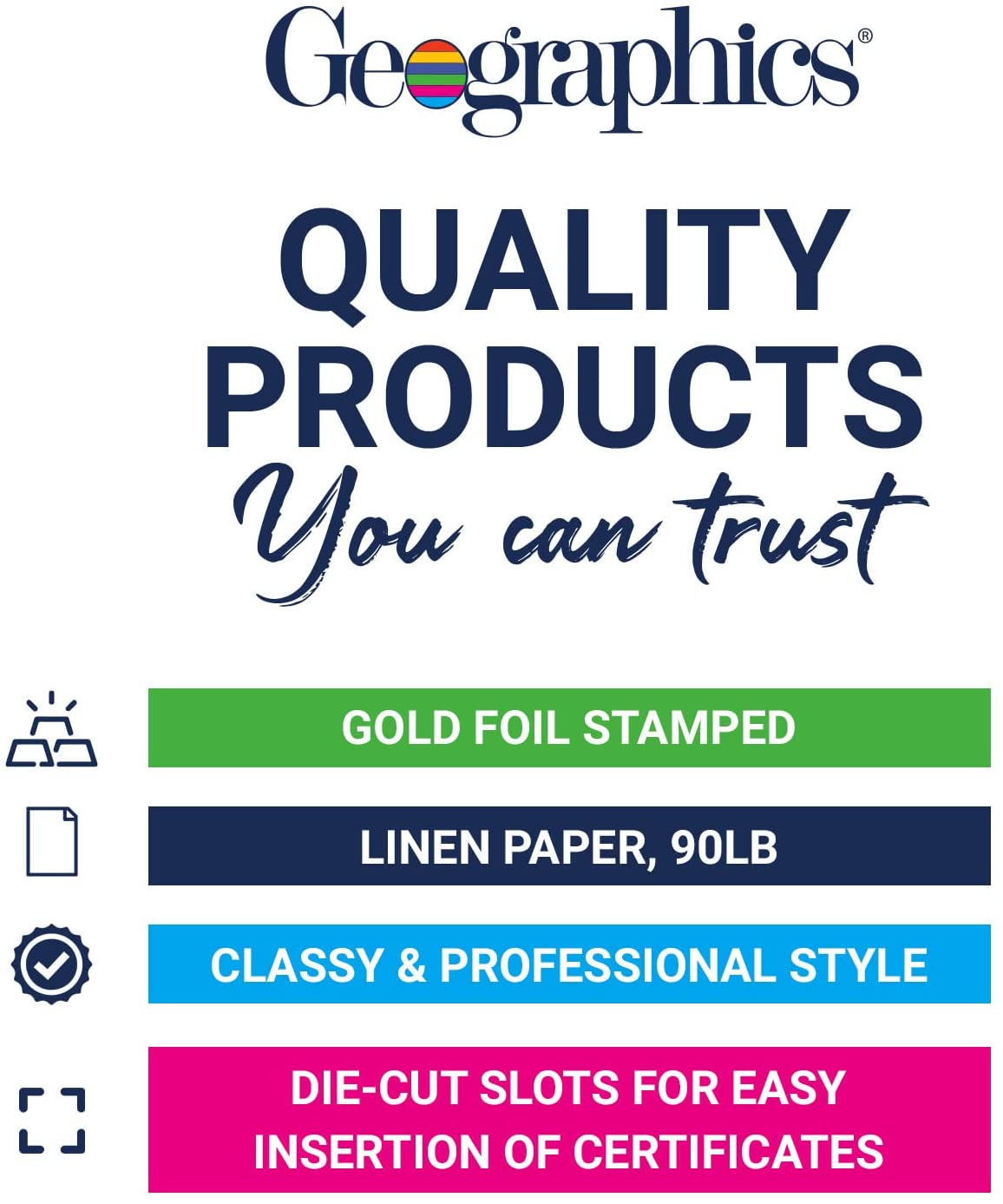 - Geographics premium 80 lb. linen stock certificate or document cover.