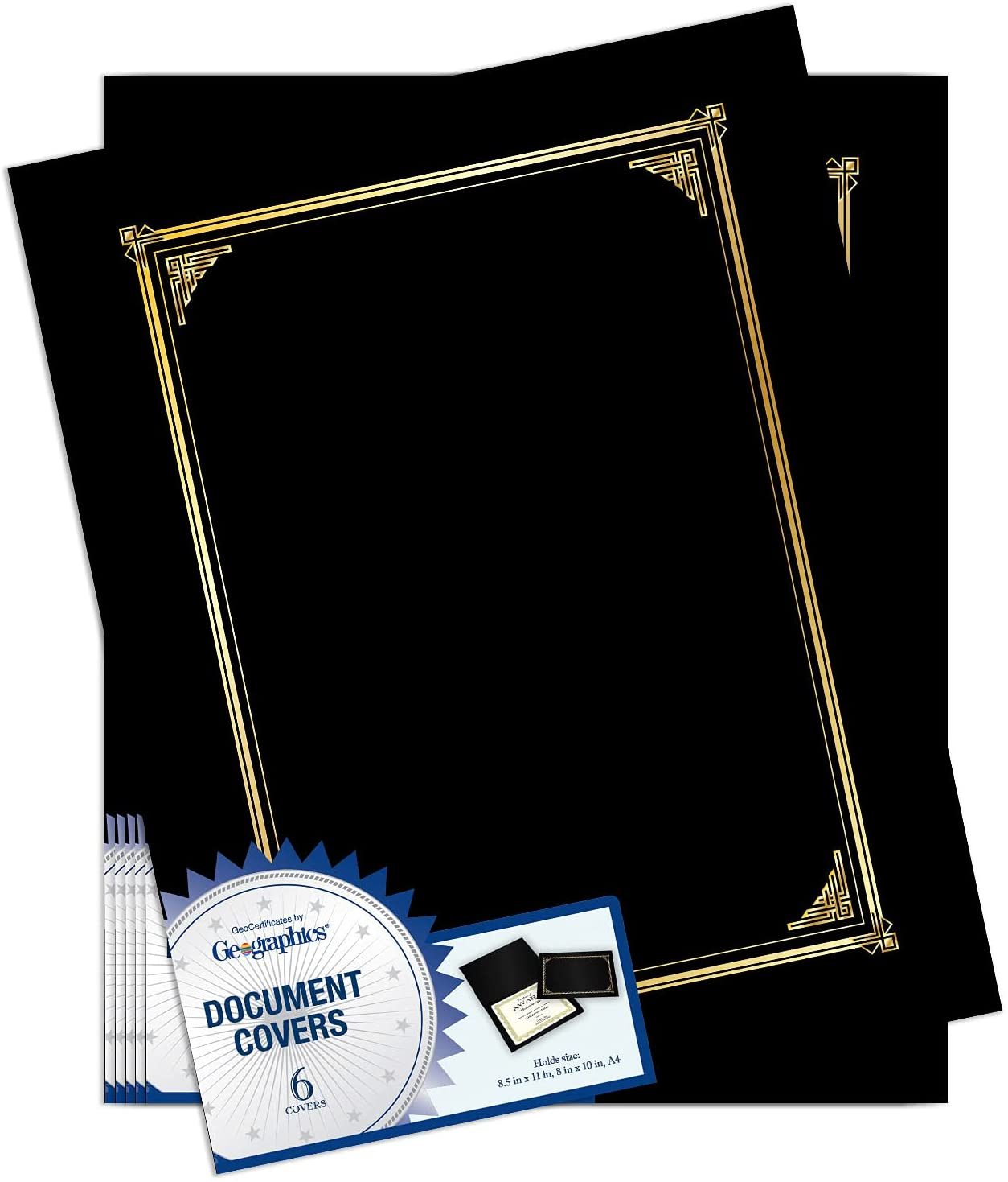 Geographics Classic Linen Certificate/Document Covers, 12.5 x 9.75in, Black (6 Pack)