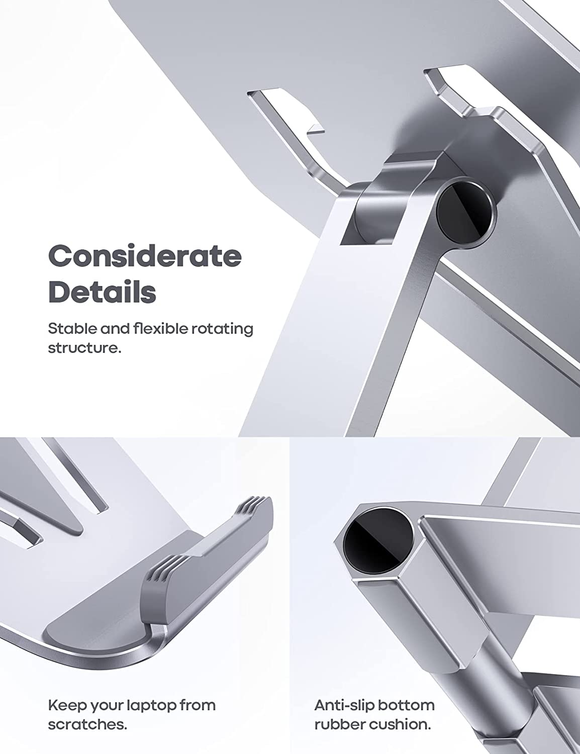 - 【Ergonomic Design】 The MacBook air pro stand holder works as a raiser to elevate the laptop screen to your eye level. It let you fix posture and relieves neck, shoulder and spinal pain. Rubber pads and feet of notebook stand can protect your laptop from daily scratches and sliding.