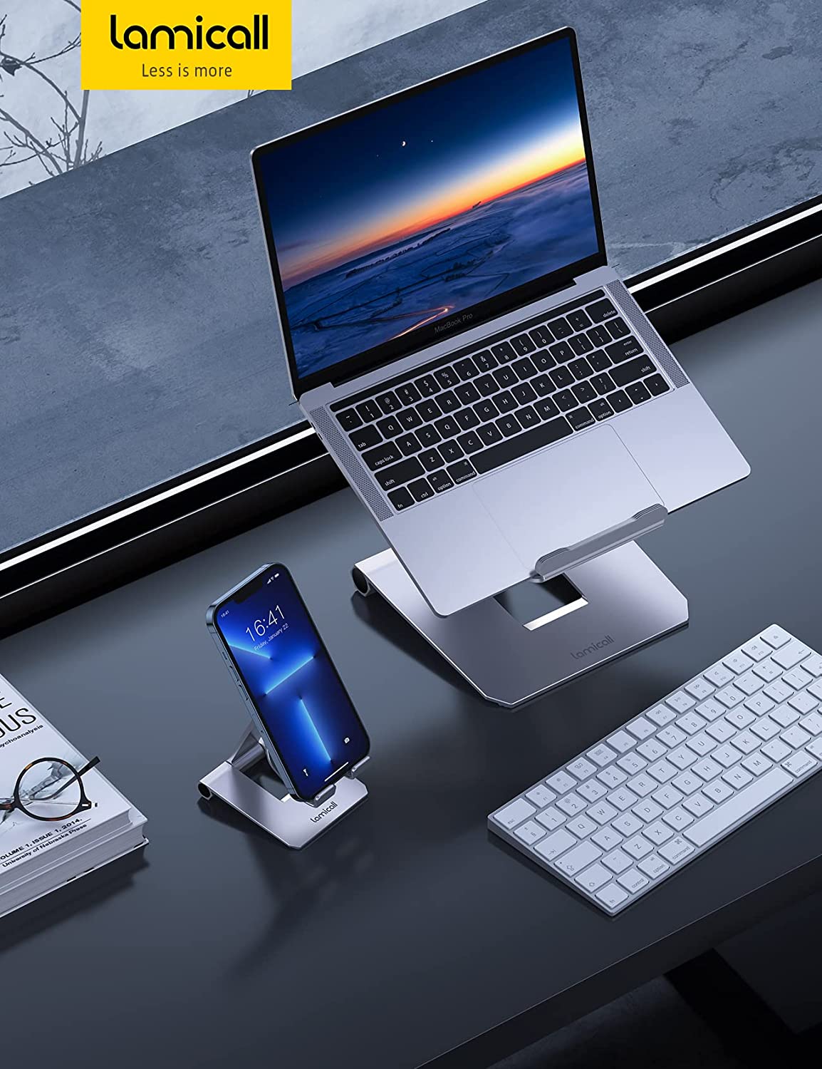 - 【Larger Base, Enhanced Stability】Thanks to high-quality aluminum alloy and the larger heavier base, Lamicall adjustable laptop stand provides solid support to hold your devices in the upright position without falling over like others.