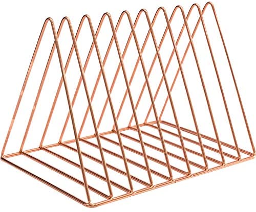 - Sturdy and durable- Made of high quality iron wire welding,sturdy,durable,unpliant and easy to clean. Triangle shape maintains great stability,not easy to lean and fall over.Dimensions (in inches) - 10.2”L X 7”W X 6.9”H.There are 2 colours for you to choose:Gold and Rose Gold.