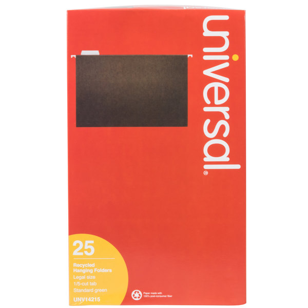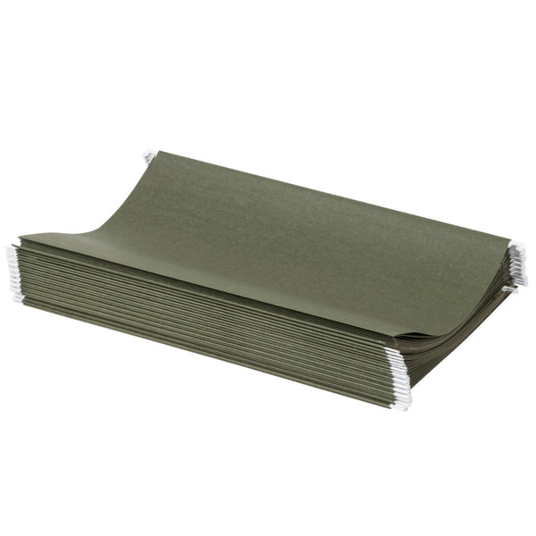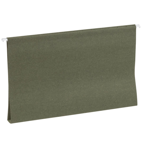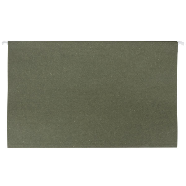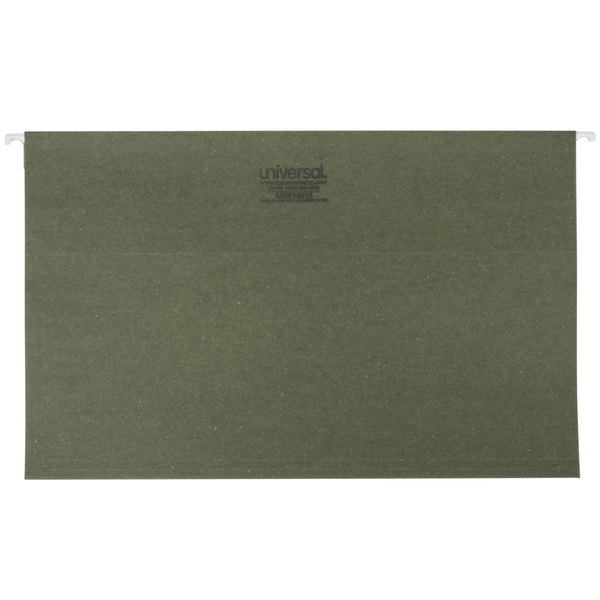 Keep your legal-sized documents organized with this Universal UNV14215 14" x 8 1/2" standard green hanging file folder with 1/5 cut tab! This convenient folder comes with a plastic 1/5 tab and paper tab insert, offering you a way to effectively label each file by its contents for quick identification. Since the inserts can be interchanged, you can easily reuse the same folder multiple times. Plus, the built-in hanging hooks allow you to place it in a filing cabinet and effortlessly slide it to the desired location.