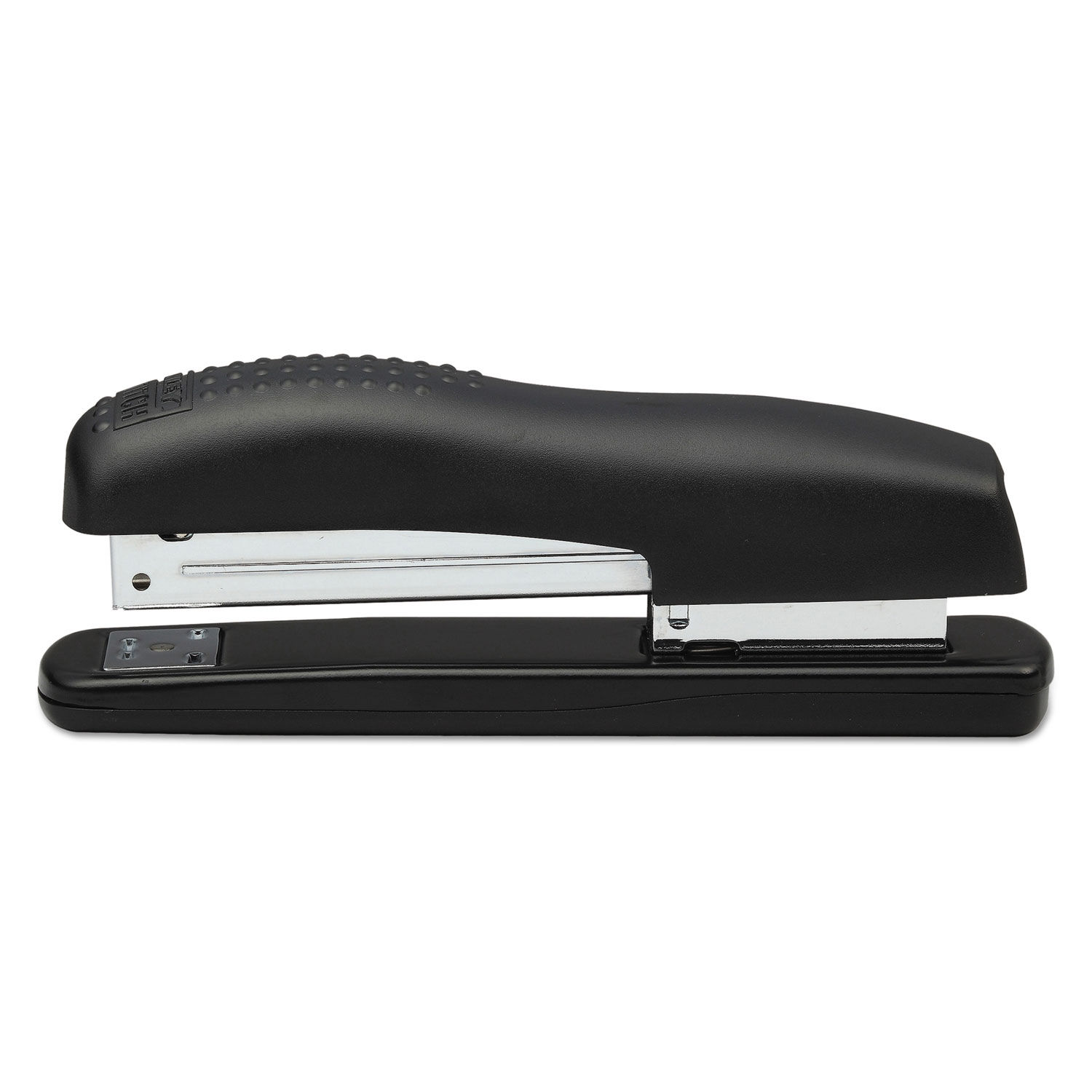 - Comfortable and reliable performance. Strong all-metal internal construction with a curved ergonomic silhouette for comfort. Stapler opens up for bulletin board tacking. Adjustable Dual Clinch for the option of traditional standard stapling or temporary stapling. Visual staple reload alert window reveals staple supply to avoid surprise staple shortages. 20 sheet capacity. Uses Premium Standard Staples. Perfect for school, work, or the home office. Lifetime Limited Warranty.