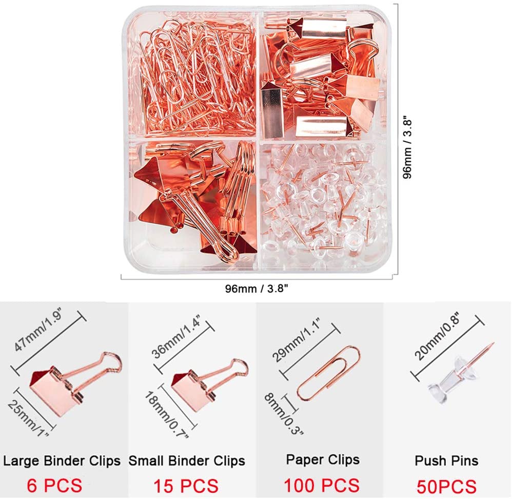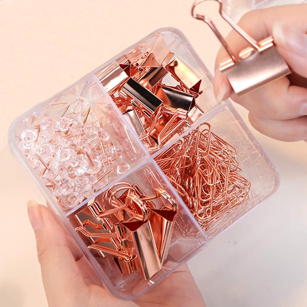 Binder Clips, Paper Clips, Push Pins Sets - Rose Gold (Value Pack)