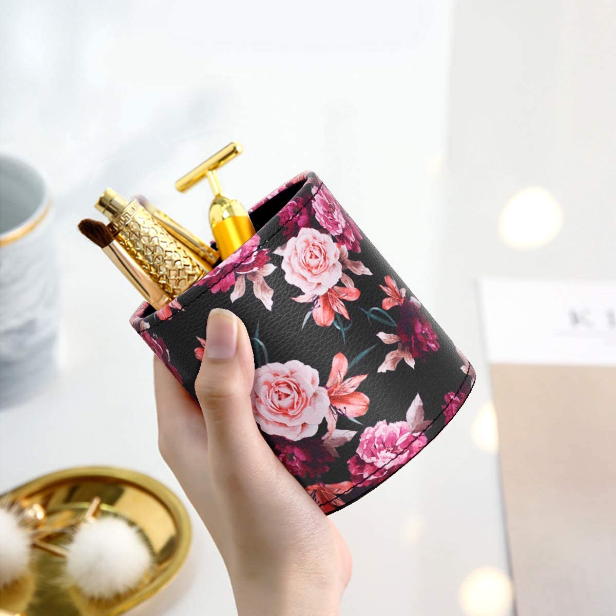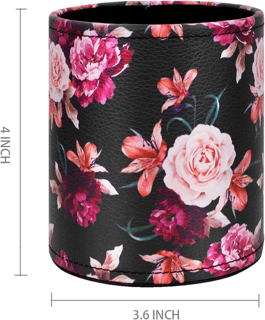 Waveyu Pen Pencil Holder, Cup Container - Black Flower