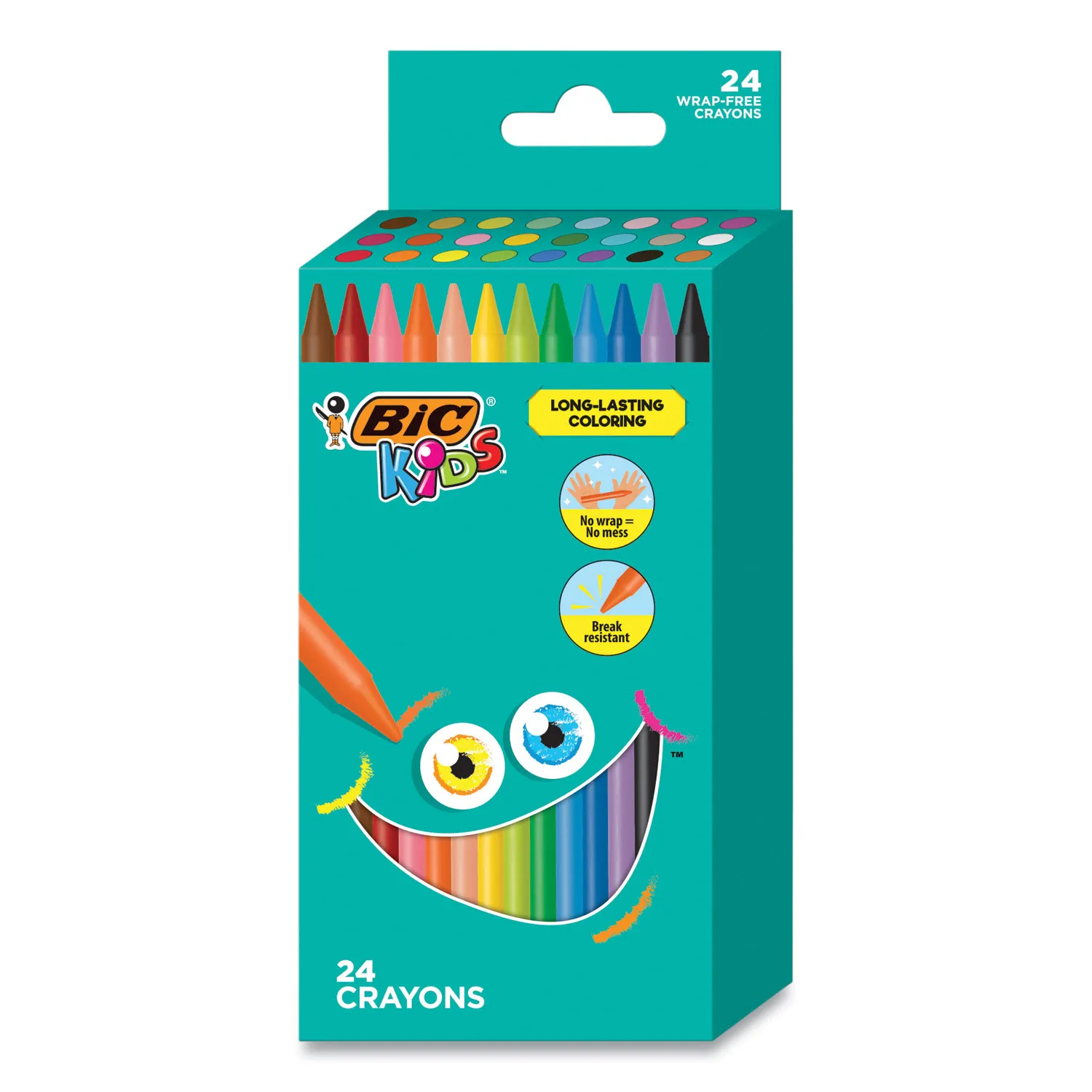 BIC Kids Coloring Crayons, Assorted Colors, Pack of 24 Crayons