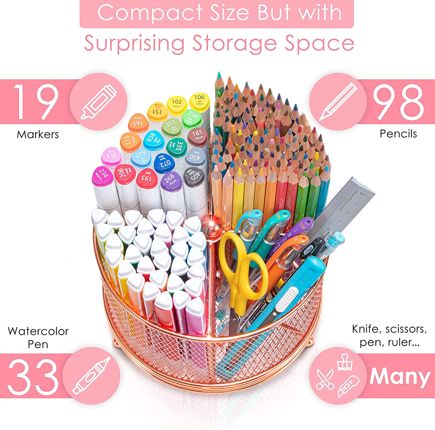 - 4 CONTAINERS LARGE CAPACITY - Its compact size won't take much space on your desk but with 4 separate containers, Varhomax rose gold desktop organizer can organize different kinds of items in different container and store up to 392 pencils/140 watercolor pens/72 markers as figured in our image. You can keep all your desktop items in one organizer to declutter your desk in your home office.