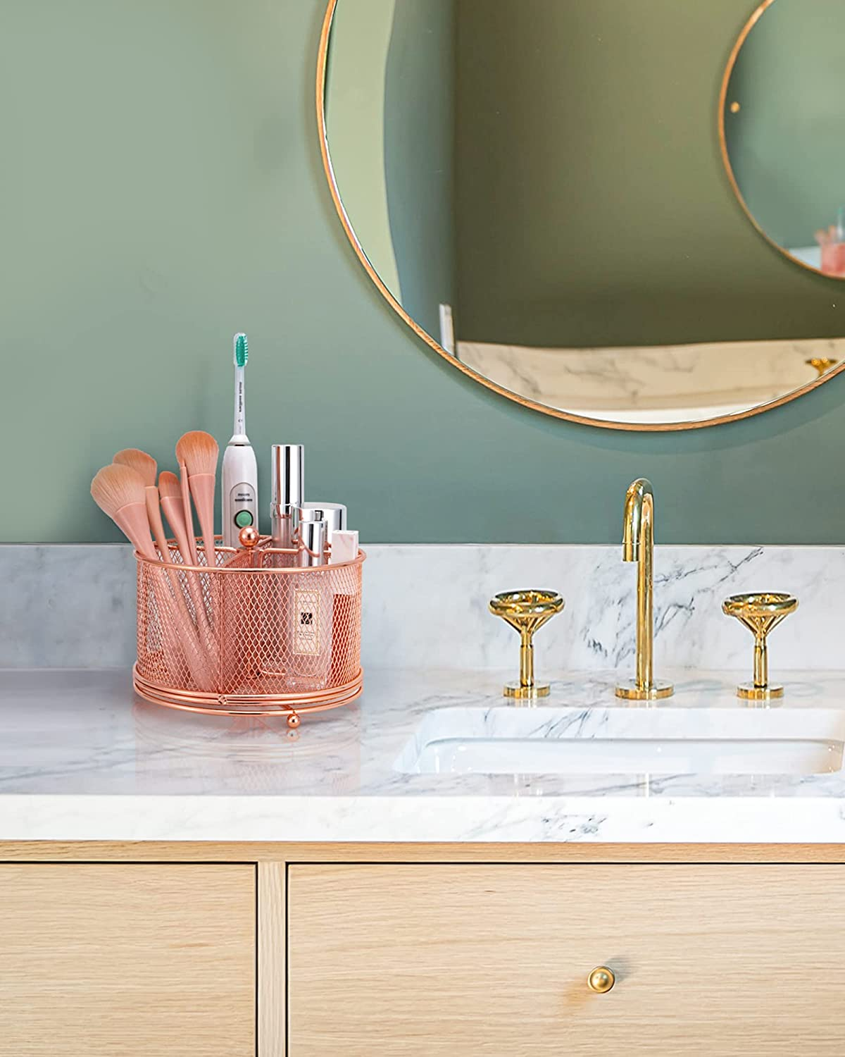 - MULTI-FUNCTION – Varhomax rose gold desktop organizer has ultra-large capacity, It’s perfect for art supply, home schooling supplies, office supply, cosmetics, small tools, bathroom necessities, etc. It can serve as pencil/marker holder but also other supplies' holder. It’s perfect to help you declutter your desktop for your home office, living room, bedroom and bathroom.