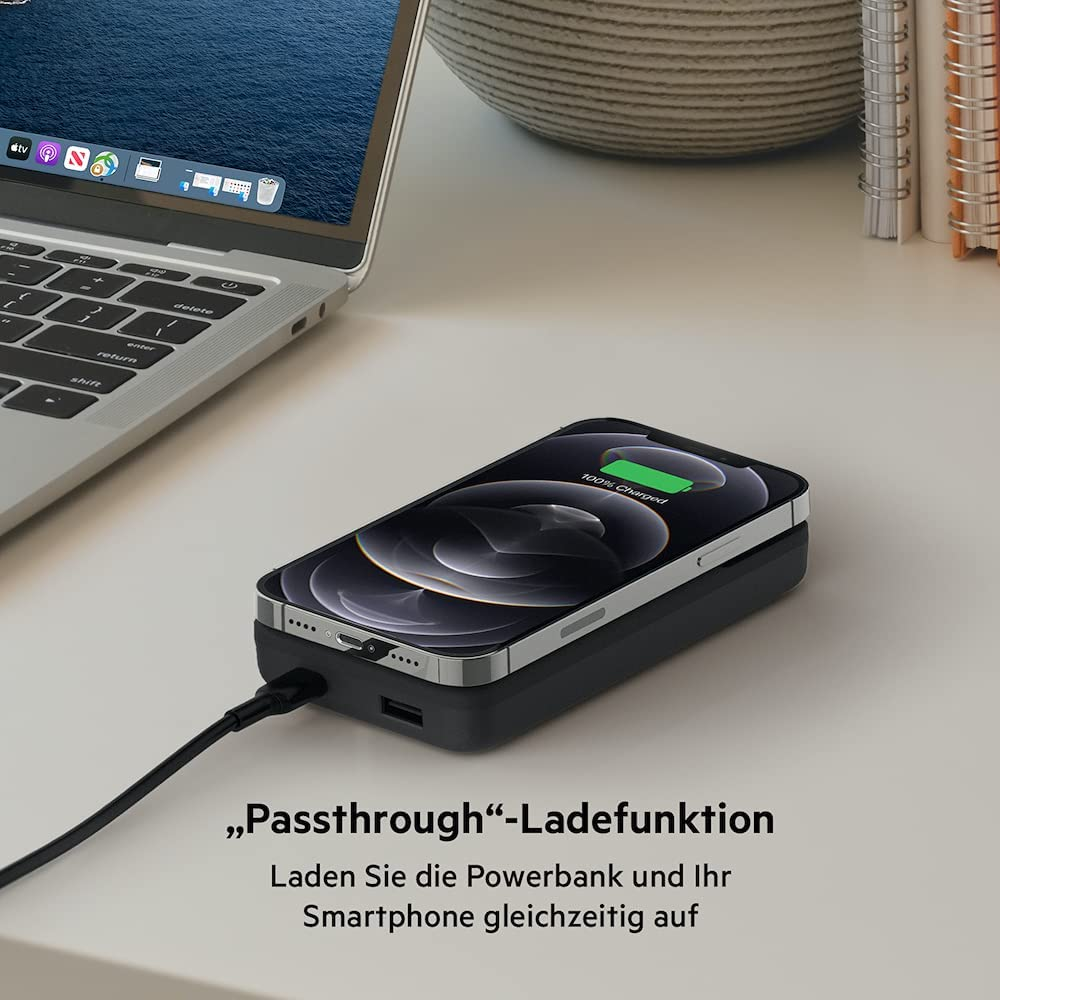- Keep charging your phone even when the power bank itself needs recharging, thanks to pass-through power technology