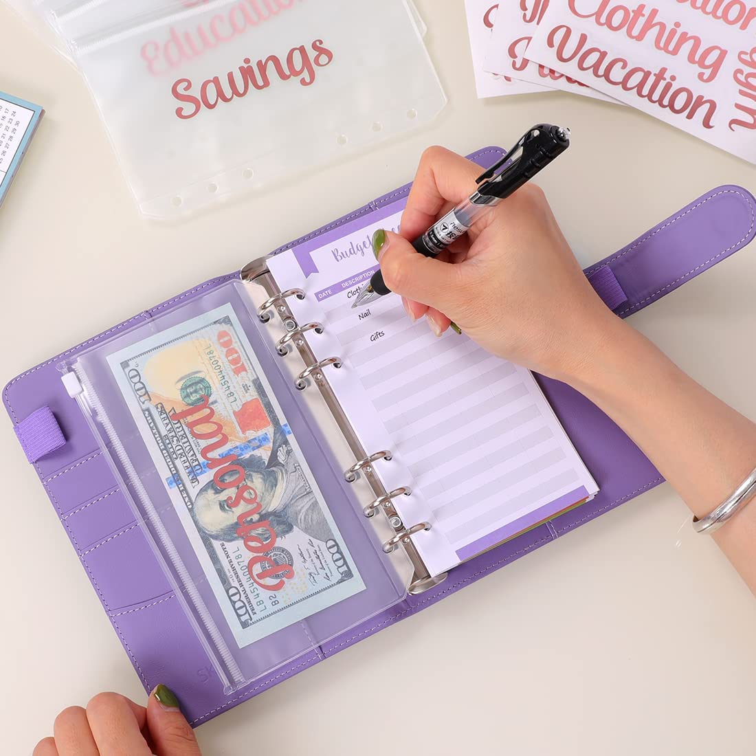 SKYDUE Budget Binder With Cash Envelopes & Expense Budget Sheets - Dark Purple